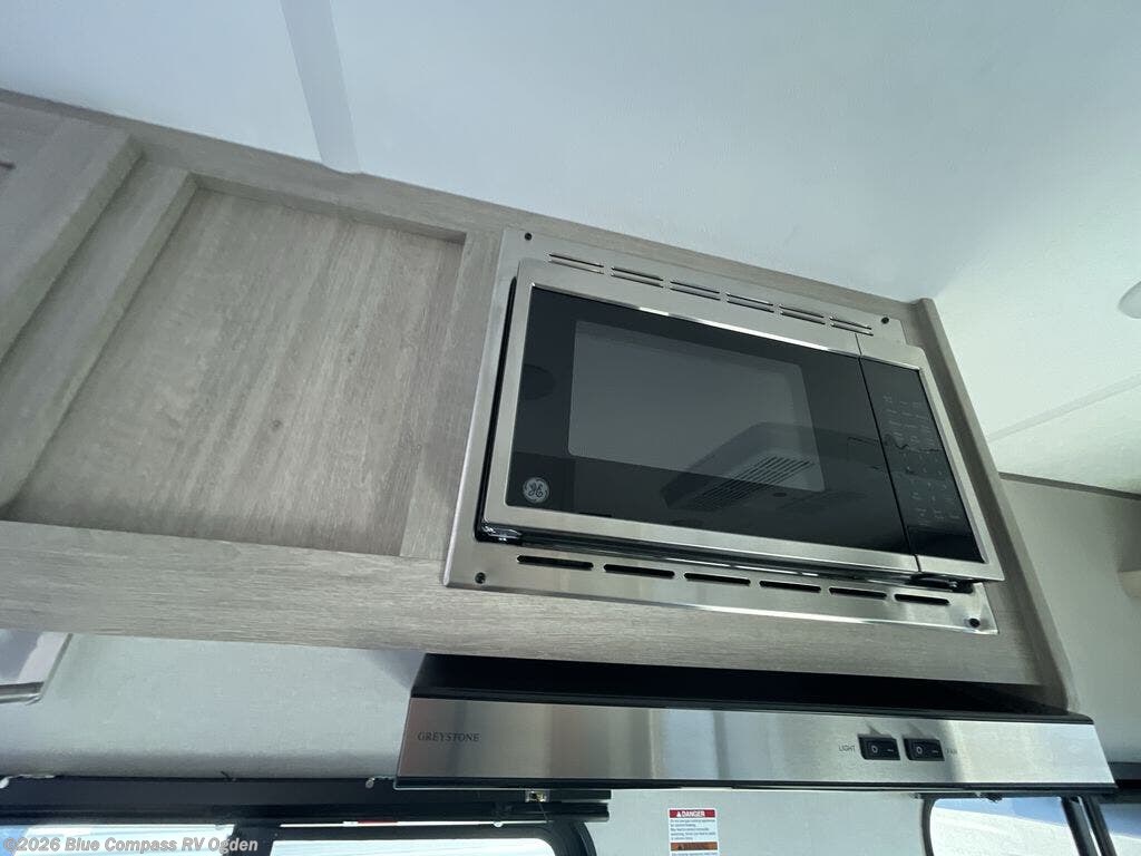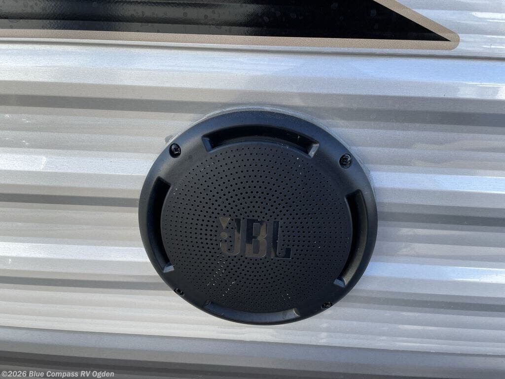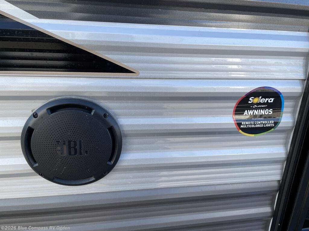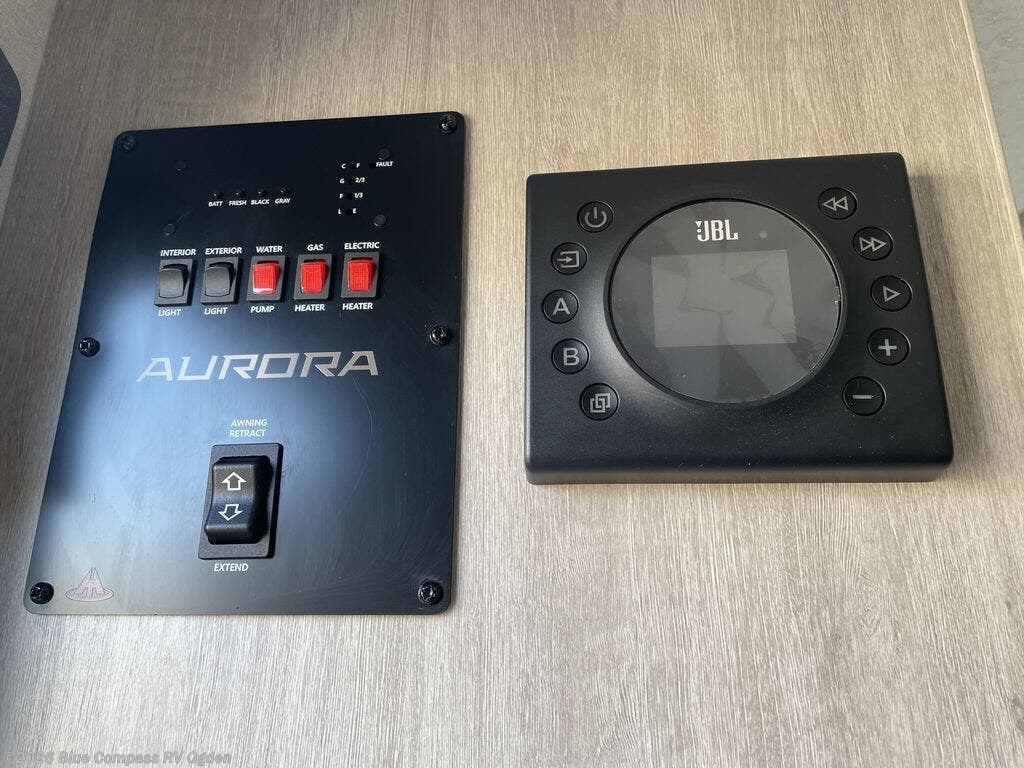 Comfortability, usability, and quality is what you will find in each one of these Forest River Aurora Light travel trailers! They are designed with a superior build and packed full with industry leading, functional, and distinctive standard features. SolidStep entrance steps and a Safe-T rail door assist on main entry door to help you safely enter and exit the unit. The diamond plate rock guard will protect your unit from road debris and the nitrogen filled radial tires, which keep their pressure longer, offer better fuel economy. You will also find upgraded JBL Elite exterior speaker outside, an electric awning with multicolor lights and remote, plus flush mount baggage doors for easy packing. The interiors are beautifully designed with matte black kitchen and bath faucets, black nightshades in the living room, and GE kitchen appliances!