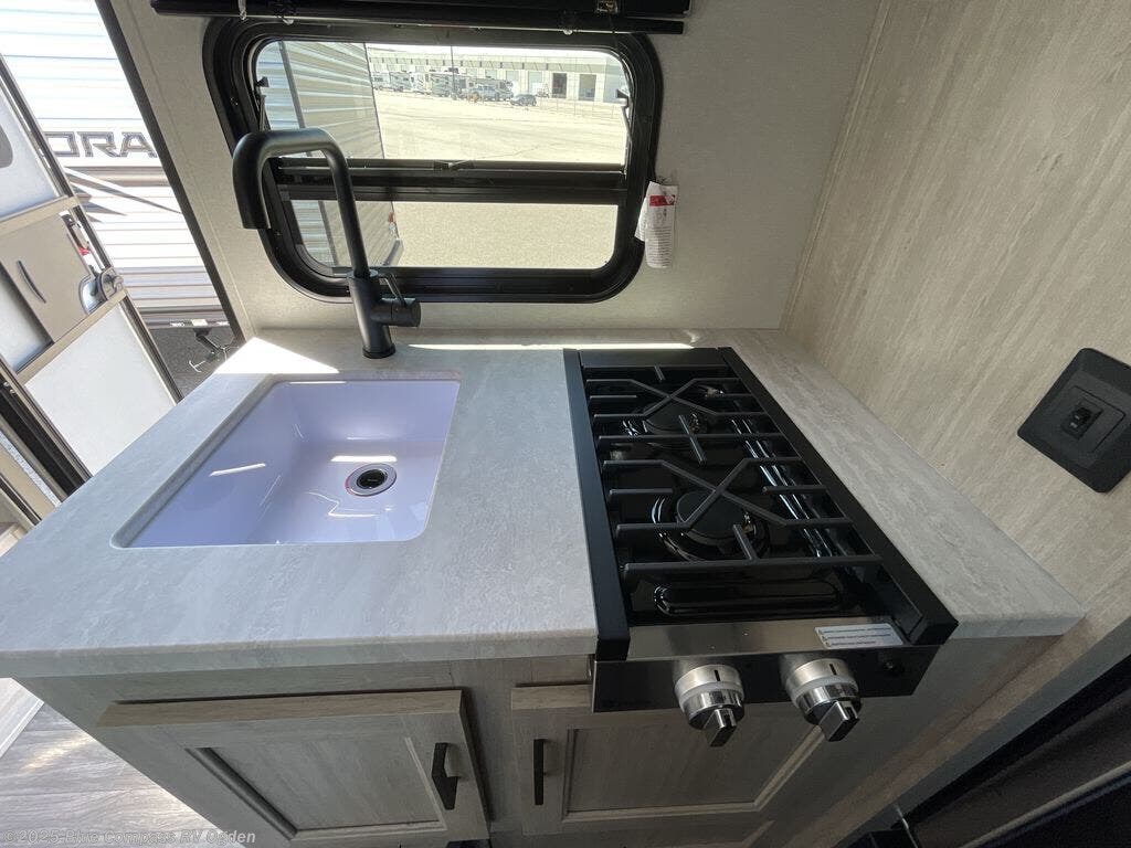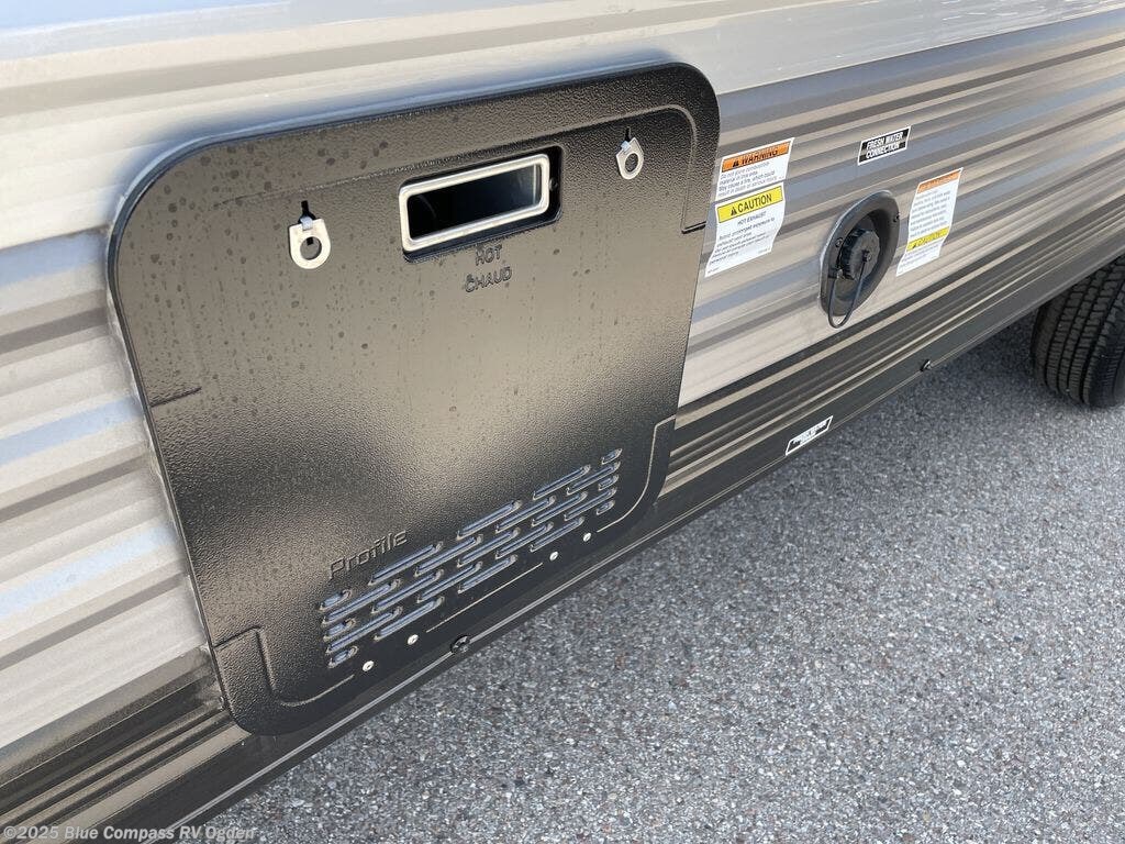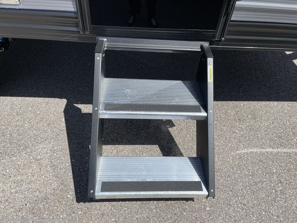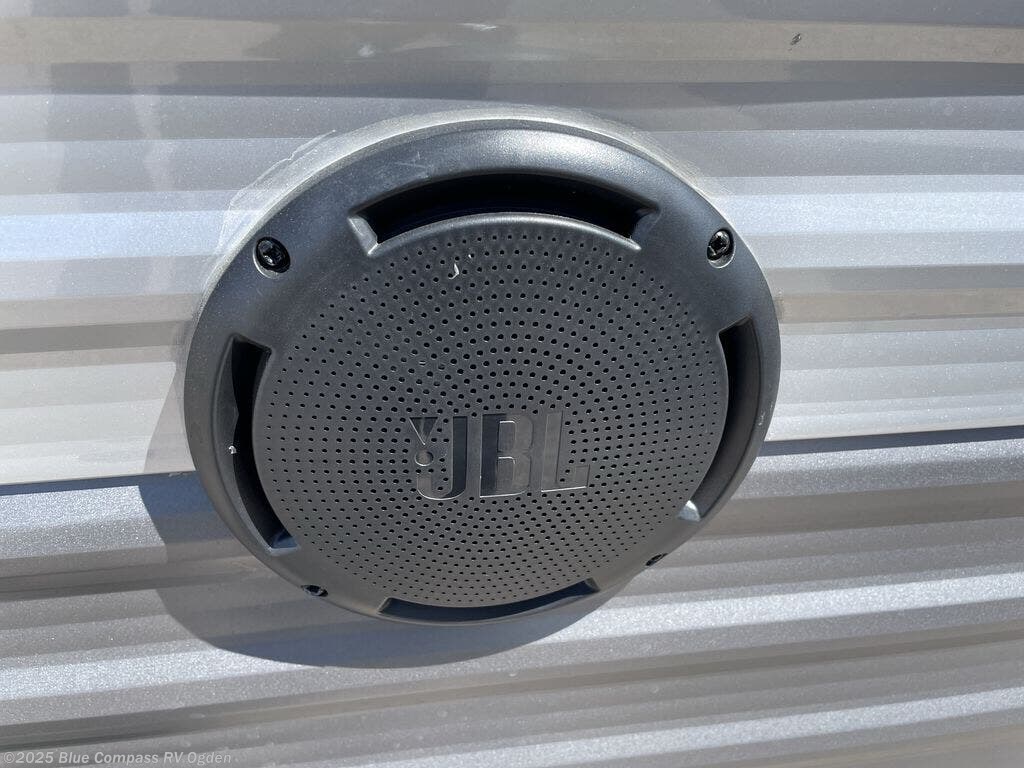 Comfortability, usability, and quality is what you will find in each one of these Forest River Aurora Light travel trailers! They are designed with a superior build and packed full with industry leading, functional, and distinctive standard features. SolidStep entrance steps and a Safe-T rail door assist on main entry door to help you safely enter and exit the unit. The diamond plate rock guard will protect your unit from road debris and the nitrogen filled radial tires, which keep their pressure longer, offer better fuel economy. You will also find upgraded JBL Elite exterior speaker outside, an electric awning with multicolor lights and remote, plus flush mount baggage doors for easy packing. The interiors are beautifully designed with matte black kitchen and bath faucets, black nightshades in the living room, and GE kitchen appliances!