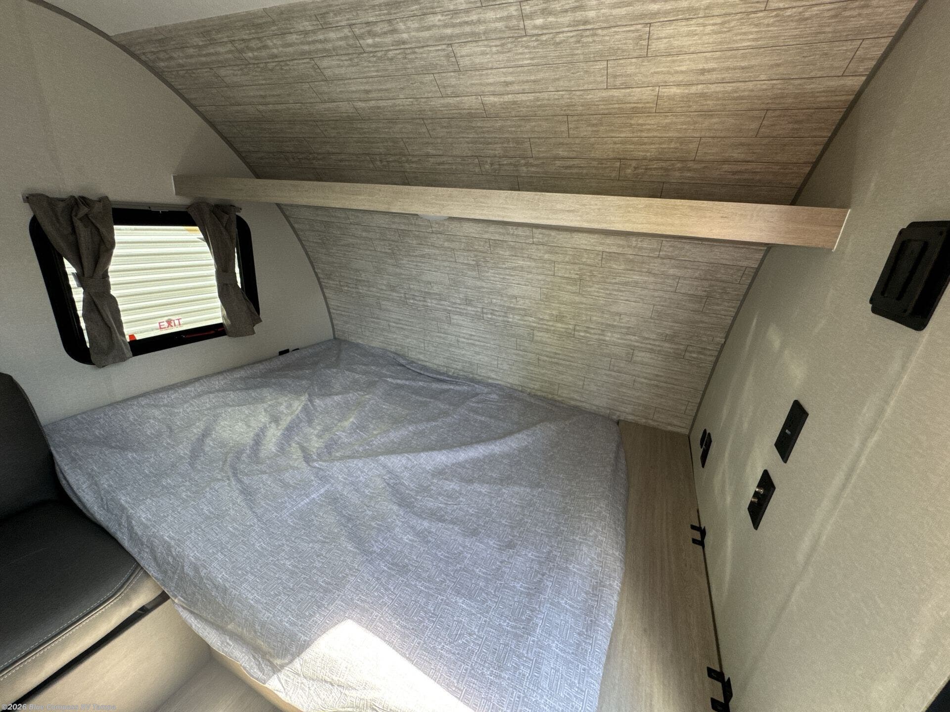 This cozy travel trailer can sleep five, so pack up and head out! You will have a queen bed up front to sleep on each night instead of an air mattress, and the little ones can take the 28" x 70" bunk beds! There is also a 60" sofa here that can sleep an additional guest and is perfect for relaxing during the day. The two burner cooktop and microwave oven means you won't have to cook over a campfire, and the private toilet and shower lets you clean up after a day outdoors. This model includes plenty of storage space, including bedroom storage, an exterior pass-through, plus additional outside storage beneath the bunks for hiking gear!