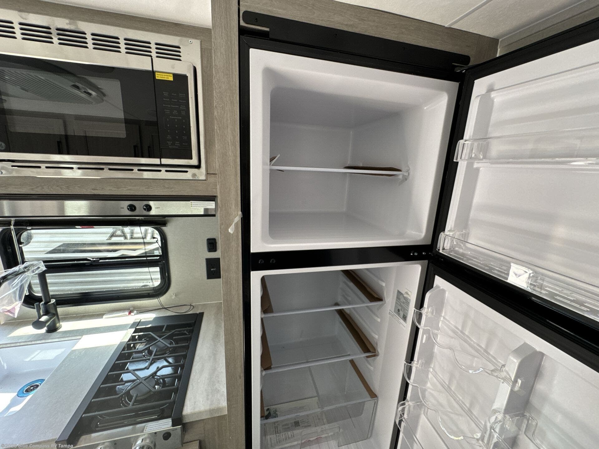 Comfortability, usability, and quality is what you will find in each one of these Forest River Aurora Light travel trailers! They are designed with a superior build and packed full with industry leading, functional, and distinctive standard features. SolidStep entrance steps and a Safe-T rail door assist on main entry door to help you safely enter and exit the unit. The diamond plate rock guard will protect your unit from road debris and the nitrogen filled radial tires, which keep their pressure longer, offer better fuel economy. You will also find upgraded JBL Elite exterior speaker outside, an electric awning with multicolor lights and remote, plus flush mount baggage doors for easy packing. The interiors are beautifully designed with matte black kitchen and bath faucets, black nightshades in the living room, and GE kitchen appliances!