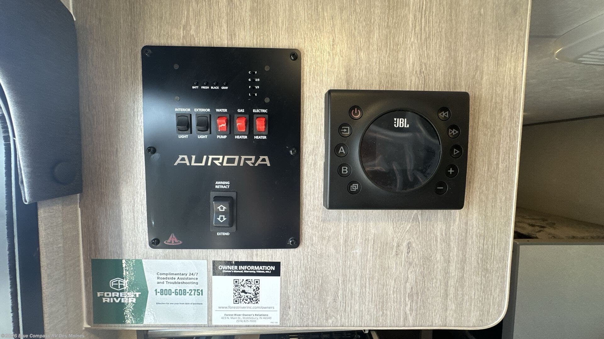 Comfortability, usability, and quality is what you will find in each one of these Forest River Aurora Light travel trailers! They are designed with a superior build and packed full with industry leading, functional, and distinctive standard features. SolidStep entrance steps and a Safe-T rail door assist on main entry door to help you safely enter and exit the unit. The diamond plate rock guard will protect your unit from road debris and the nitrogen filled radial tires, which keep their pressure longer, offer better fuel economy. You will also find upgraded JBL Elite exterior speaker outside, an electric awning with multicolor lights and remote, plus flush mount baggage doors for easy packing. The interiors are beautifully designed with matte black kitchen and bath faucets, black nightshades in the living room, and GE kitchen appliances!