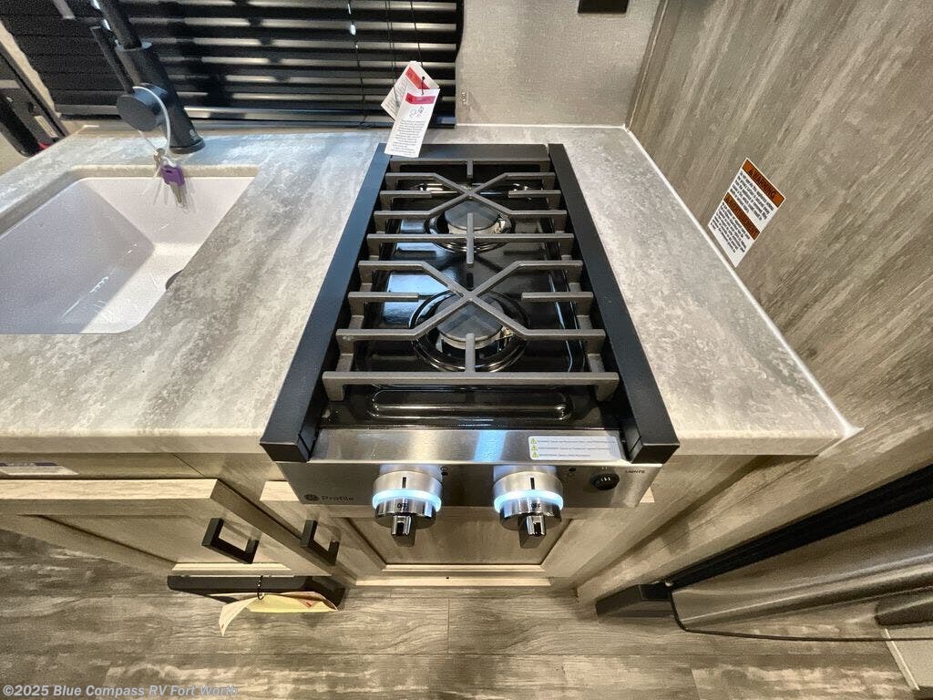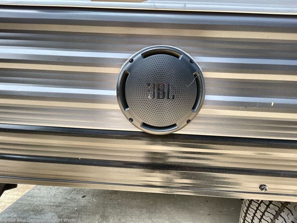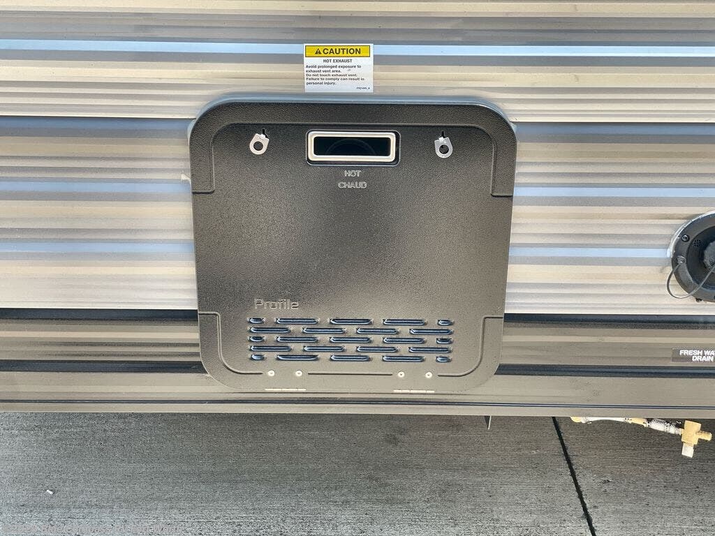 Comfortability, usability, and quality is what you will find in each one of these Forest River Aurora Light travel trailers! They are designed with a superior build and packed full with industry leading, functional, and distinctive standard features. SolidStep entrance steps and a Safe-T rail door assist on main entry door to help you safely enter and exit the unit. The diamond plate rock guard will protect your unit from road debris and the nitrogen filled radial tires, which keep their pressure longer, offer better fuel economy. You will also find upgraded JBL Elite exterior speaker outside, an electric awning with multicolor lights and remote, plus flush mount baggage doors for easy packing. The interiors are beautifully designed with matte black kitchen and bath faucets, black nightshades in the living room, and GE kitchen appliances!