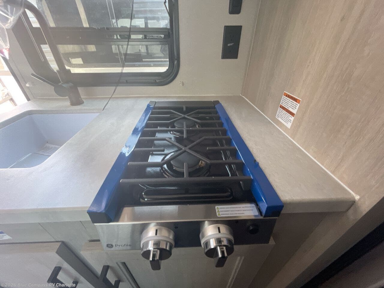 Comfortability, usability, and quality is what you will find in each one of these Forest River Aurora Light travel trailers! They are designed with a superior build and packed full with industry leading, functional, and distinctive standard features. SolidStep entrance steps and a Safe-T rail door assist on main entry door to help you safely enter and exit the unit. The diamond plate rock guard will protect your unit from road debris and the nitrogen filled radial tires, which keep their pressure longer, offer better fuel economy. You will also find upgraded JBL Elite exterior speaker outside, an electric awning with multicolor lights and remote, plus flush mount baggage doors for easy packing. The interiors are beautifully designed with matte black kitchen and bath faucets, black nightshades in the living room, and GE kitchen appliances!