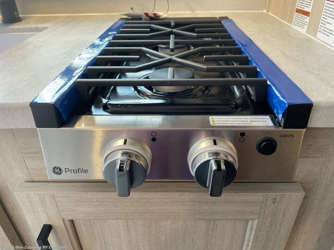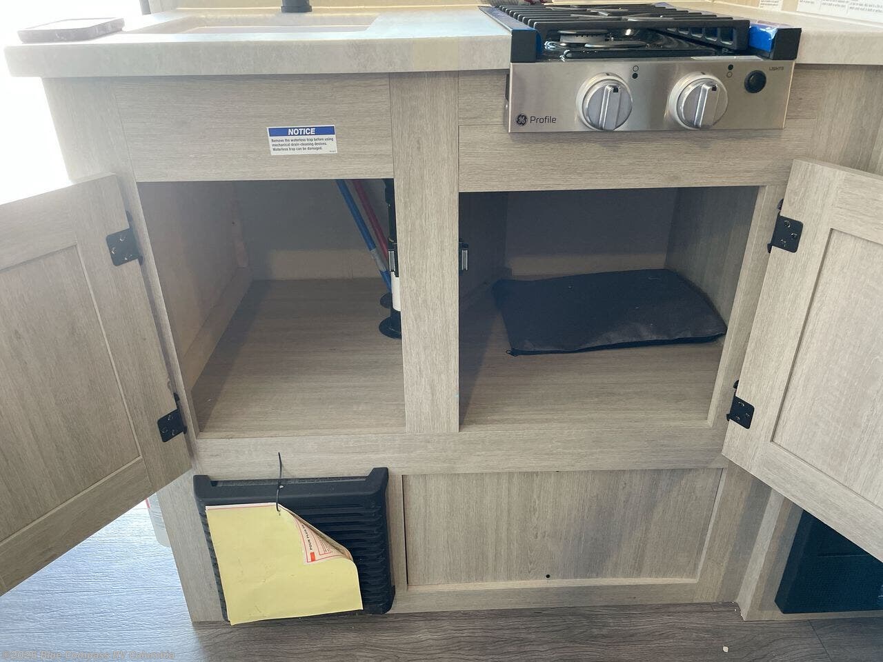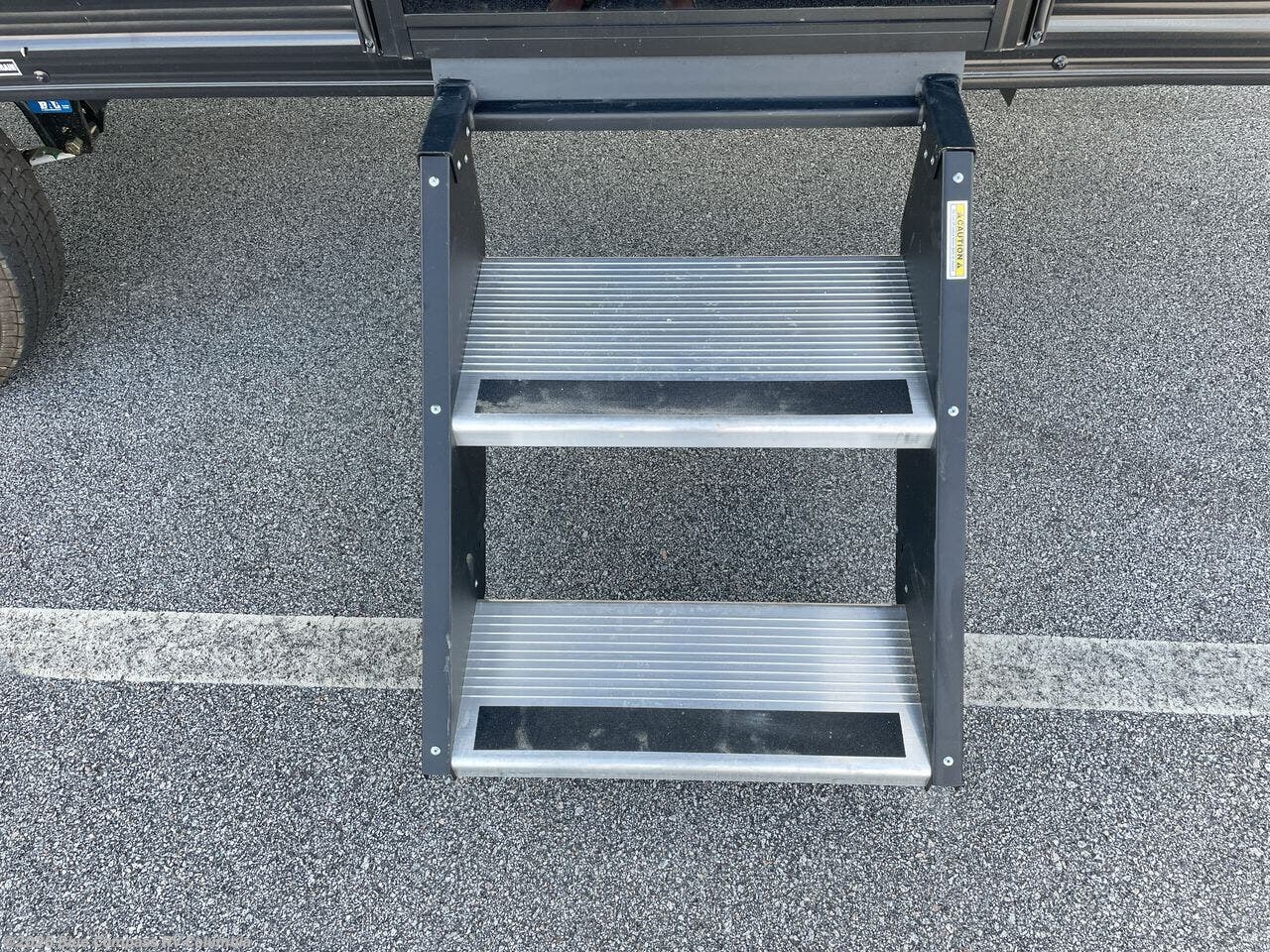 Comfortability, usability, and quality is what you will find in each one of these Forest River Aurora Light travel trailers! They are designed with a superior build and packed full with industry leading, functional, and distinctive standard features. SolidStep entrance steps and a Safe-T rail door assist on main entry door to help you safely enter and exit the unit. The diamond plate rock guard will protect your unit from road debris and the nitrogen filled radial tires, which keep their pressure longer, offer better fuel economy. You will also find upgraded JBL Elite exterior speaker outside, an electric awning with multicolor lights and remote, plus flush mount baggage doors for easy packing. The interiors are beautifully designed with matte black kitchen and bath faucets, black nightshades in the living room, and GE kitchen appliances!