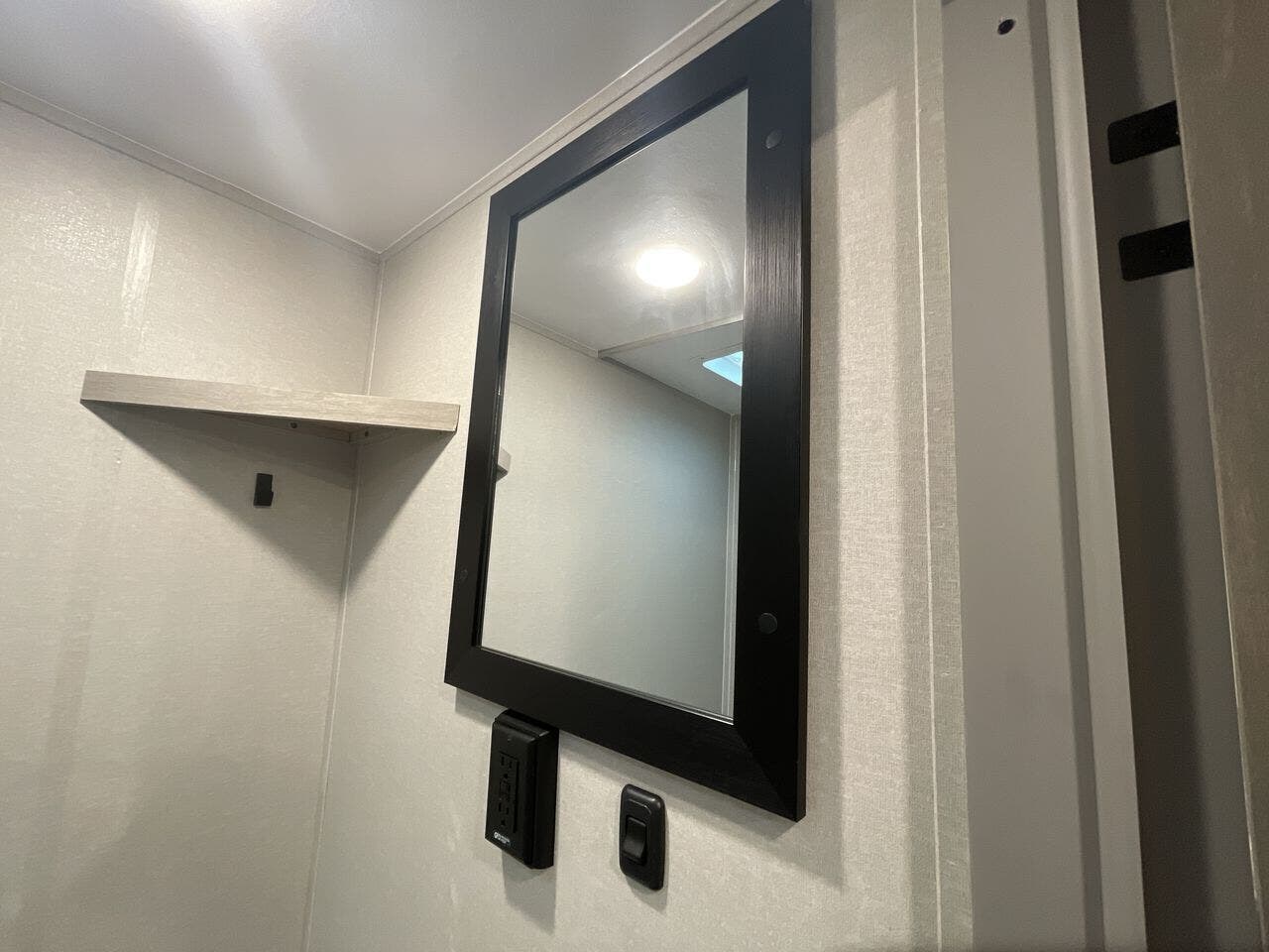 Comfortability, usability, and quality is what you will find in each one of these Forest River Aurora Light travel trailers! They are designed with a superior build and packed full with industry leading, functional, and distinctive standard features. SolidStep entrance steps and a Safe-T rail door assist on main entry door to help you safely enter and exit the unit. The diamond plate rock guard will protect your unit from road debris and the nitrogen filled radial tires, which keep their pressure longer, offer better fuel economy. You will also find upgraded JBL Elite exterior speaker outside, an electric awning with multicolor lights and remote, plus flush mount baggage doors for easy packing. The interiors are beautifully designed with matte black kitchen and bath faucets, black nightshades in the living room, and GE kitchen appliances!