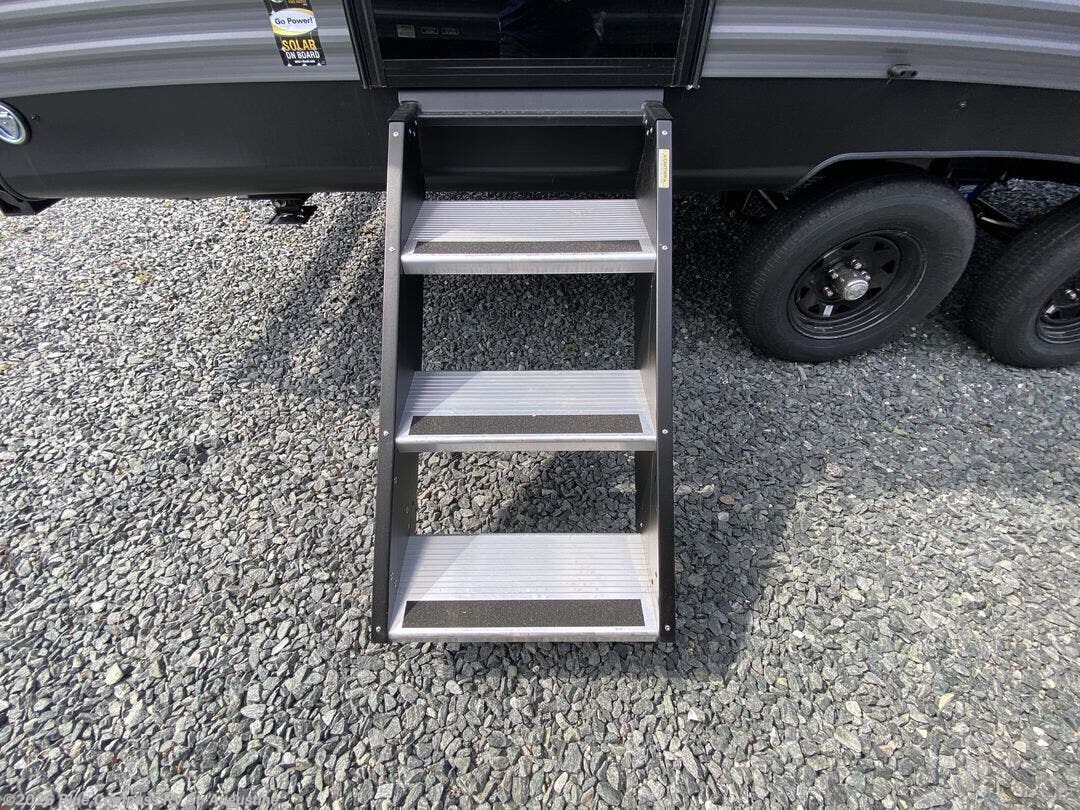 Comfortability, usability, and quality is what you will find in each one of these Forest River Aurora Light travel trailers! They are designed with a superior build and packed full with industry leading, functional, and distinctive standard features. SolidStep entrance steps and a Safe-T rail door assist on main entry door to help you safely enter and exit the unit. The diamond plate rock guard will protect your unit from road debris and the nitrogen filled radial tires, which keep their pressure longer, offer better fuel economy. You will also find upgraded JBL Elite exterior speaker outside, an electric awning with multicolor lights and remote, plus flush mount baggage doors for easy packing. The interiors are beautifully designed with matte black kitchen and bath faucets, black nightshades in the living room, and GE kitchen appliances!