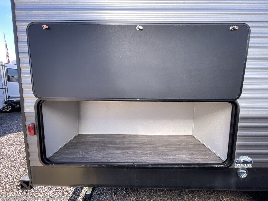 Comfortability, usability, and quality is what you will find in each one of these Forest River Aurora travel trailers, toy haulers or destination trailers! They are designed with a superior build and packed full with industry leading, functional, and distinctive standard features. SolidStep entrance steps and a Safe-T rail door assist on main entry door to help you safely enter and exit the unit. The diamond plate rock guard will protect your unit from road debris and the nitrogen filled radial tires, which keep their pressure longer, offer better fuel economy. You will also find upgraded JBL Elite exterior speakers outside, an electric awning with multicolor lights and remote, plus flush mount baggage doors for easy packing. The interiors are beautifully designed with a deep undermount farm style sink, stainless steel appliances, and linoleum flooring throughout which will be easy to clean. Come find your favorite model today!