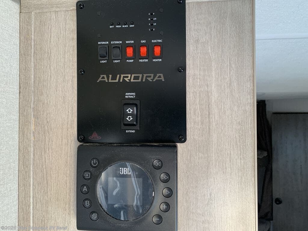 Comfortability, usability, and quality is what you will find in each one of these Forest River Aurora Light travel trailers! They are designed with a superior build and packed full with industry leading, functional, and distinctive standard features. SolidStep entrance steps and a Safe-T rail door assist on main entry door to help you safely enter and exit the unit. The diamond plate rock guard will protect your unit from road debris and the nitrogen filled radial tires, which keep their pressure longer, offer better fuel economy. You will also find upgraded JBL Elite exterior speaker outside, an electric awning with multicolor lights and remote, plus flush mount baggage doors for easy packing. The interiors are beautifully designed with matte black kitchen and bath faucets, black nightshades in the living room, and GE kitchen appliances!