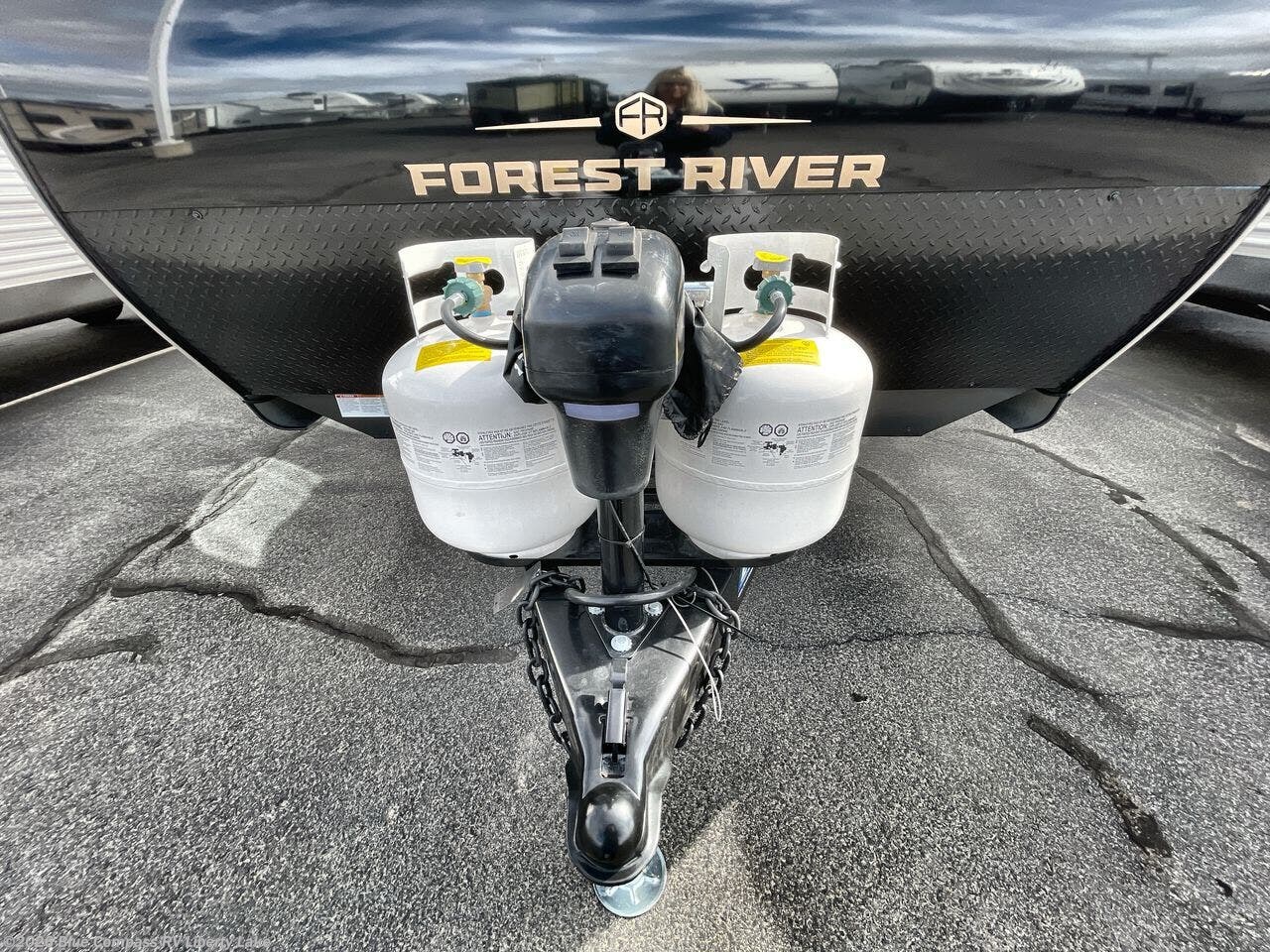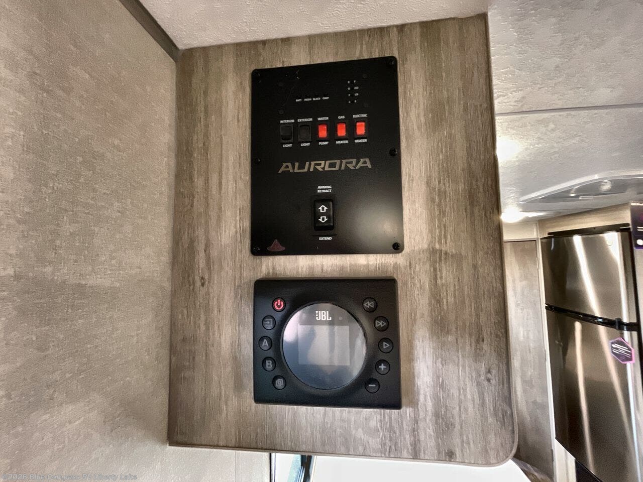 Comfortability, usability, and quality is what you will find in each one of these Forest River Aurora Light travel trailers! They are designed with a superior build and packed full with industry leading, functional, and distinctive standard features. SolidStep entrance steps and a Safe-T rail door assist on main entry door to help you safely enter and exit the unit. The diamond plate rock guard will protect your unit from road debris and the nitrogen filled radial tires, which keep their pressure longer, offer better fuel economy. You will also find upgraded JBL Elite exterior speaker outside, an electric awning with multicolor lights and remote, plus flush mount baggage doors for easy packing. The interiors are beautifully designed with matte black kitchen and bath faucets, black nightshades in the living room, and GE kitchen appliances!