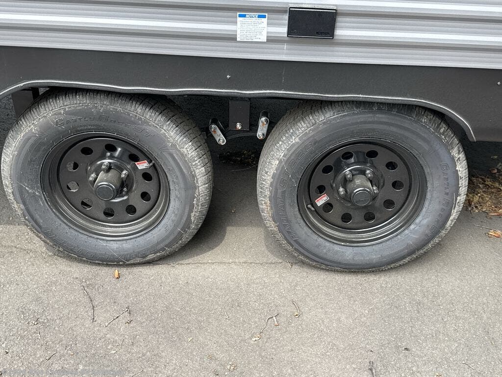 Pack your bags and head out on a fun weekend camping trip with this travel trailer! Whether you have a small family or a few guests wanting to come along, there will be enough sleeping spaces between the double-size bunk beds, the 60" x 74" queen bed in the front semi-private bedroom, and even the booth dinette. The chef can prepare meals indoors using the three burner cooktop or microwave oven, and there is a 12V 10.7 cu. ft. refrigerator for perishables. There is plenty of storage throughout with the overhead cabinets and wardrobes, as well as outside with the front pass-through storage area!