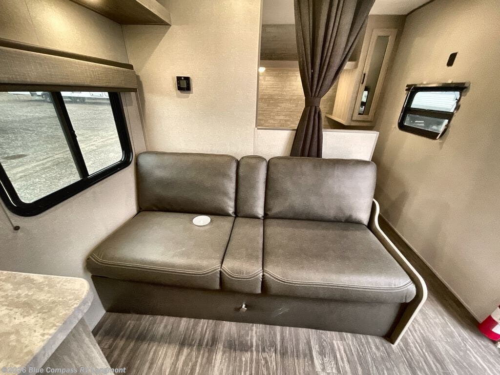 Pack your bags and head out on a fun weekend camping trip with this travel trailer! Whether you have a small family or a few guests wanting to come along, there will be enough sleeping spaces between the double-size bunk beds, the 60" x 74" queen bed in the front semi-private bedroom, and even the booth dinette. The chef can prepare meals indoors using the three burner cooktop or microwave oven, and there is a 12V 10.7 cu. ft. refrigerator for perishables. There is plenty of storage throughout with the overhead cabinets and wardrobes, as well as outside with the front pass-through storage area!