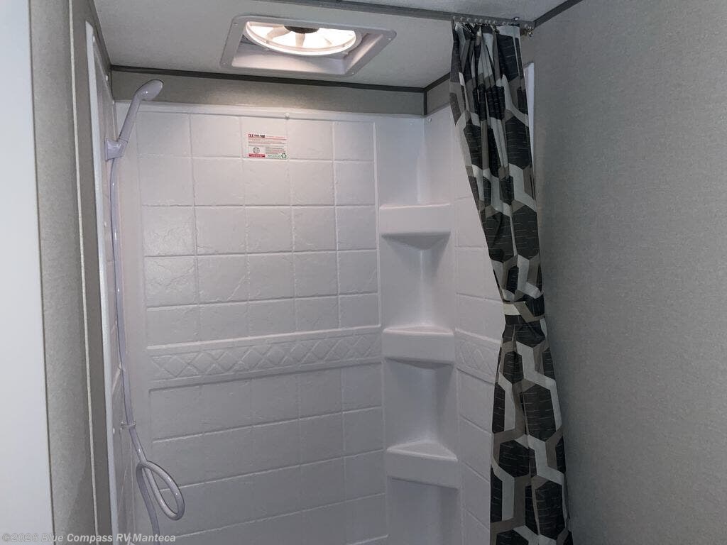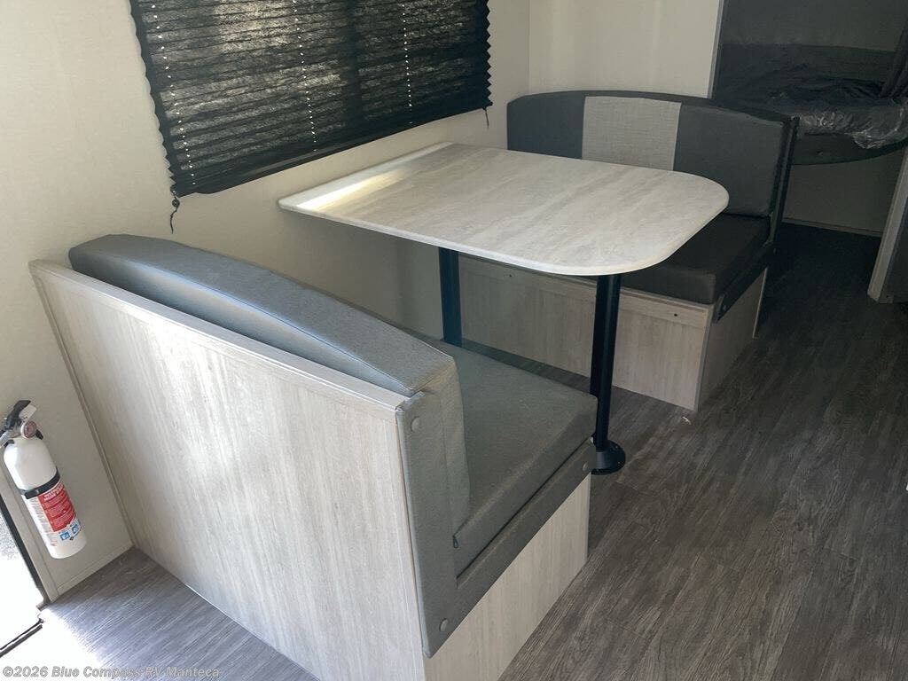 Pack your bags and head out on a fun weekend camping trip with this travel trailer! Whether you have a small family or a few guests wanting to come along, there will be enough sleeping spaces between the double-size bunk beds, the 60" x 74" queen bed in the front semi-private bedroom, and even the booth dinette. The chef can prepare meals indoors using the three burner cooktop or microwave oven, and there is a 12V 10.7 cu. ft. refrigerator for perishables. There is plenty of storage throughout with the overhead cabinets and wardrobes, as well as outside with the front pass-through storage area!