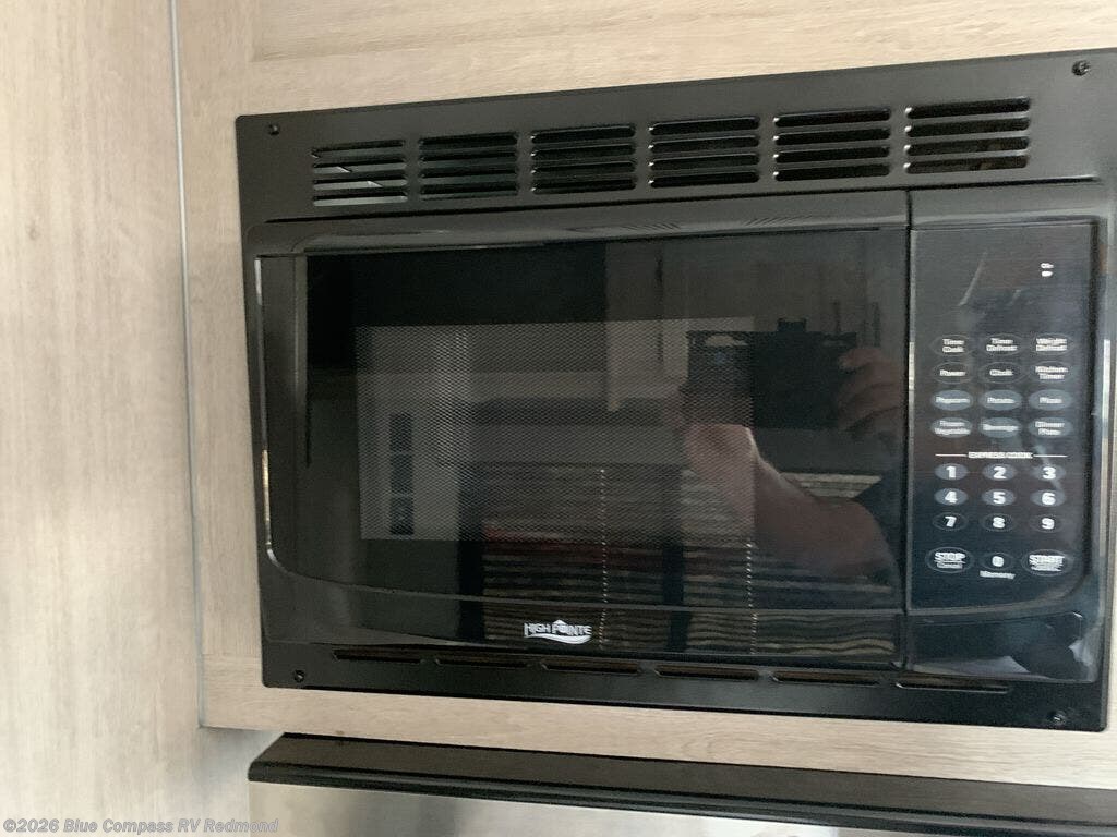 Pack your bags and head out on a fun weekend camping trip with this travel trailer! Whether you have a small family or a few guests wanting to come along, there will be enough sleeping spaces between the double-size bunk beds, the 60" x 74" queen bed in the front semi-private bedroom, and even the booth dinette. The chef can prepare meals indoors using the three burner cooktop or microwave oven, and there is a 12V 10.7 cu. ft. refrigerator for perishables. There is plenty of storage throughout with the overhead cabinets and wardrobes, as well as outside with the front pass-through storage area!