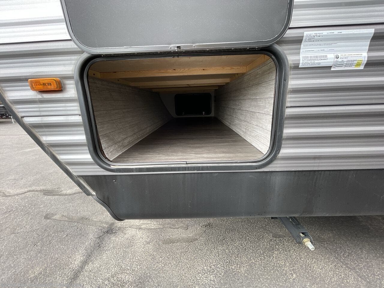 Pack your bags and head out on a fun weekend camping trip with this travel trailer! Whether you have a small family or a few guests wanting to come along, there will be enough sleeping spaces between the double-size bunk beds, the 60" x 74" queen bed in the front semi-private bedroom, and even the booth dinette. The chef can prepare meals indoors using the three burner cooktop or microwave oven, and there is a 12V 10.7 cu. ft. refrigerator for perishables. There is plenty of storage throughout with the overhead cabinets and wardrobes, as well as outside with the front pass-through storage area!