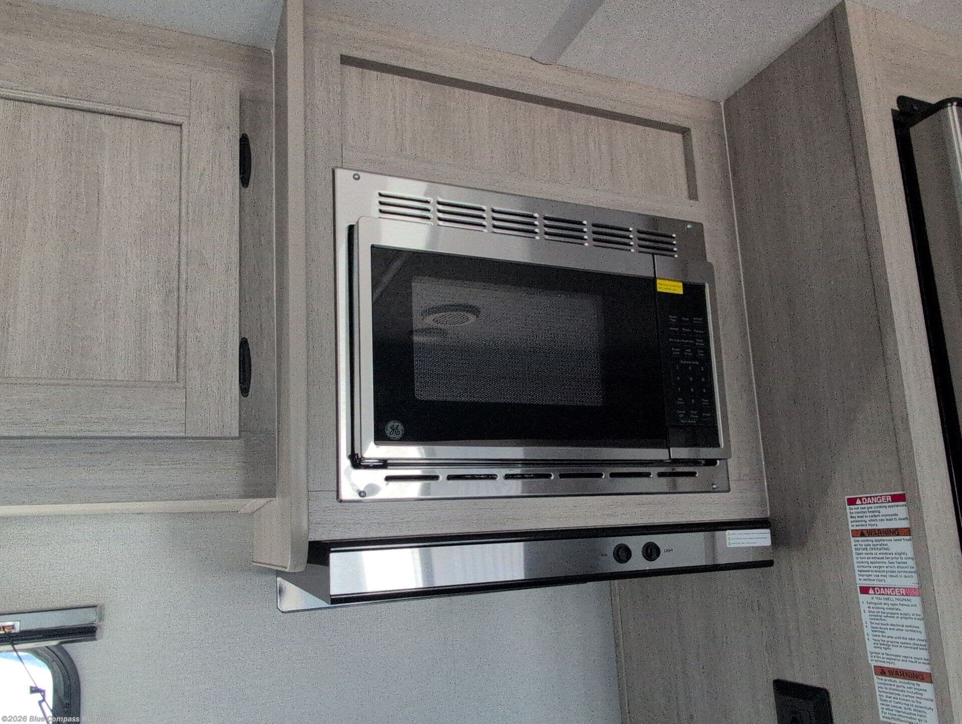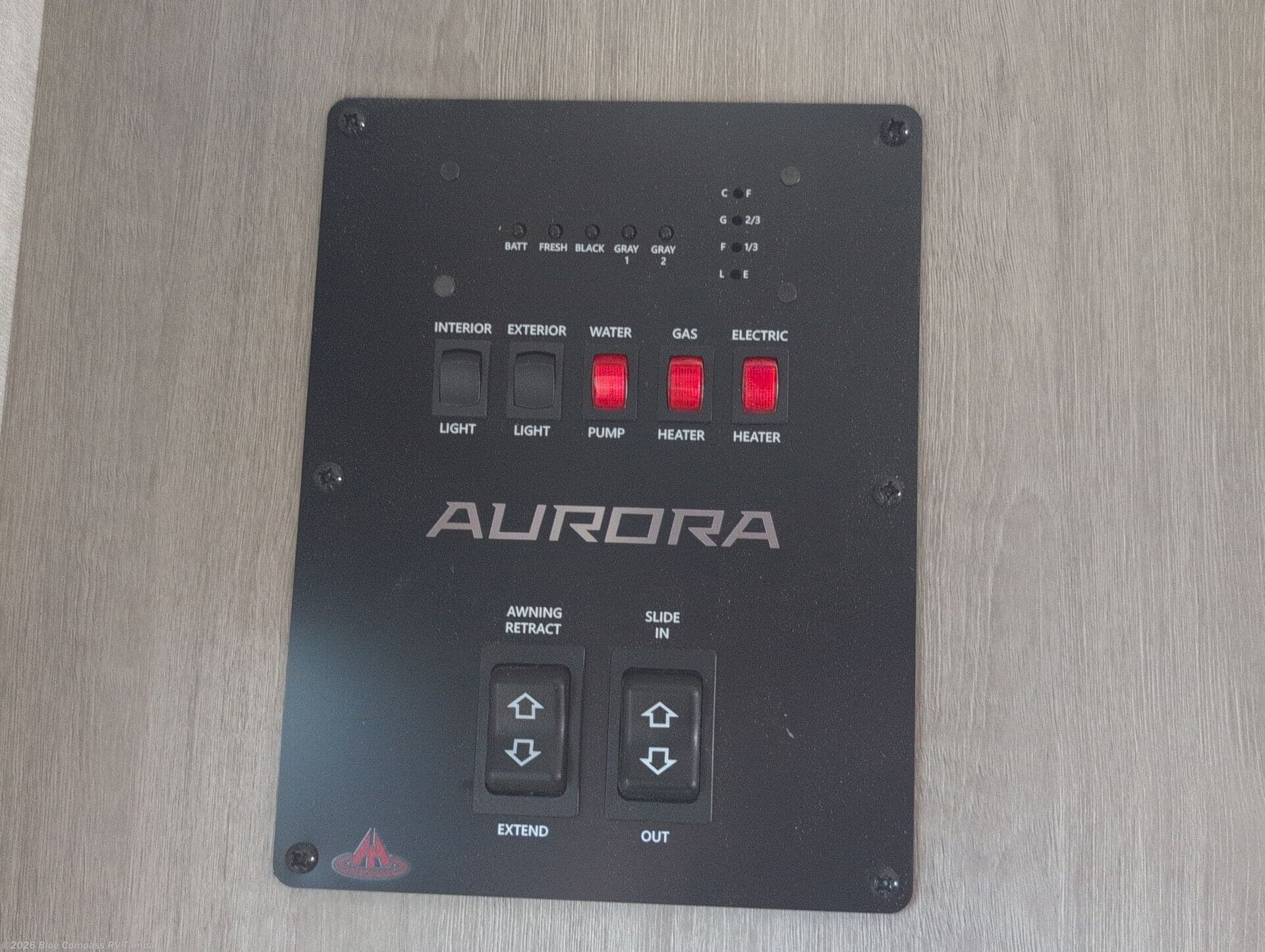 Comfortability, usability, and quality is what you will find in each one of these Forest River Aurora Light travel trailers! They are designed with a superior build and packed full with industry leading, functional, and distinctive standard features. SolidStep entrance steps and a Safe-T rail door assist on main entry door to help you safely enter and exit the unit. The diamond plate rock guard will protect your unit from road debris and the nitrogen filled radial tires, which keep their pressure longer, offer better fuel economy. You will also find upgraded JBL Elite exterior speaker outside, an electric awning with multicolor lights and remote, plus flush mount baggage doors for easy packing. The interiors are beautifully designed with matte black kitchen and bath faucets, black nightshades in the living room, and GE kitchen appliances!