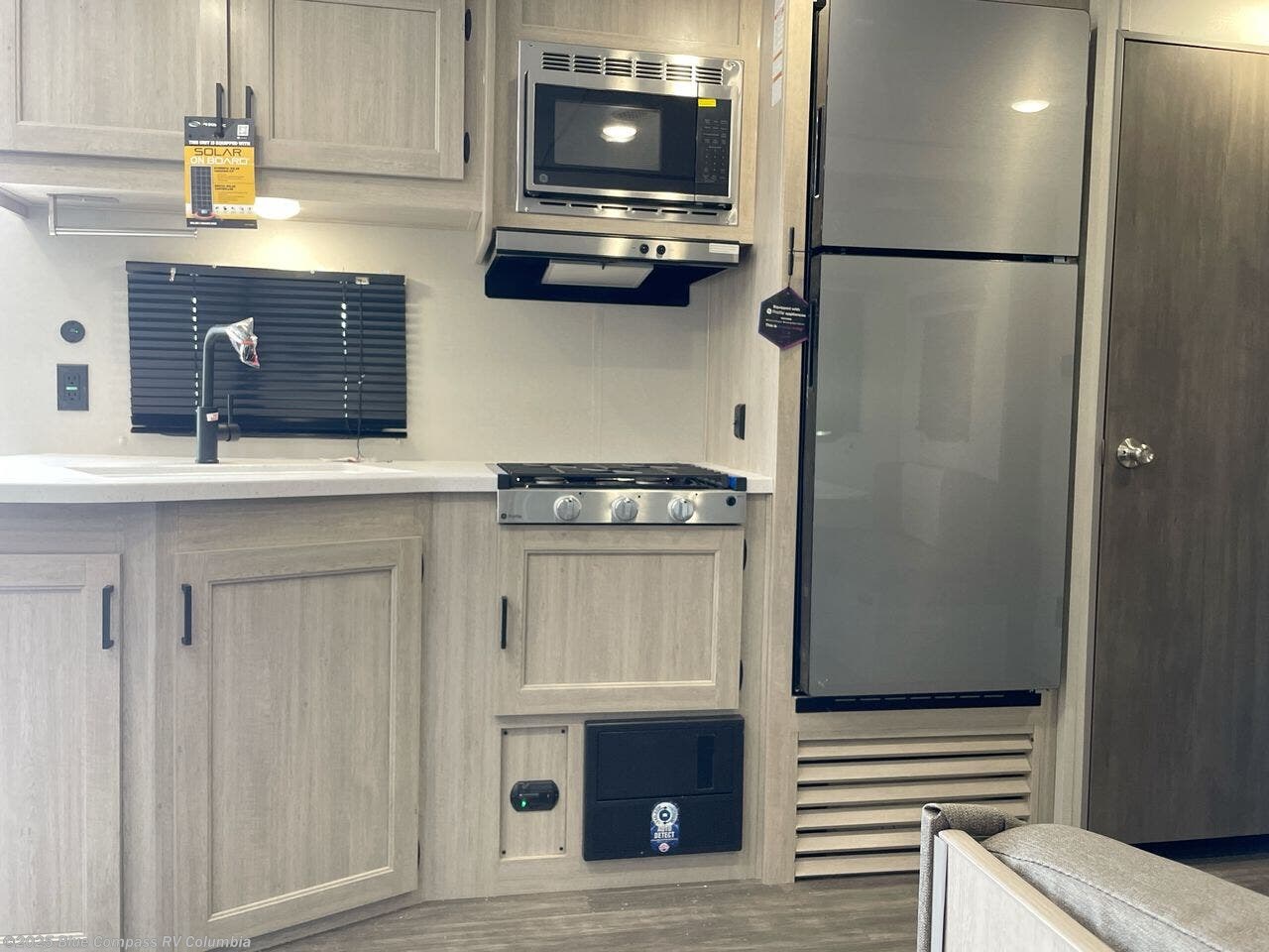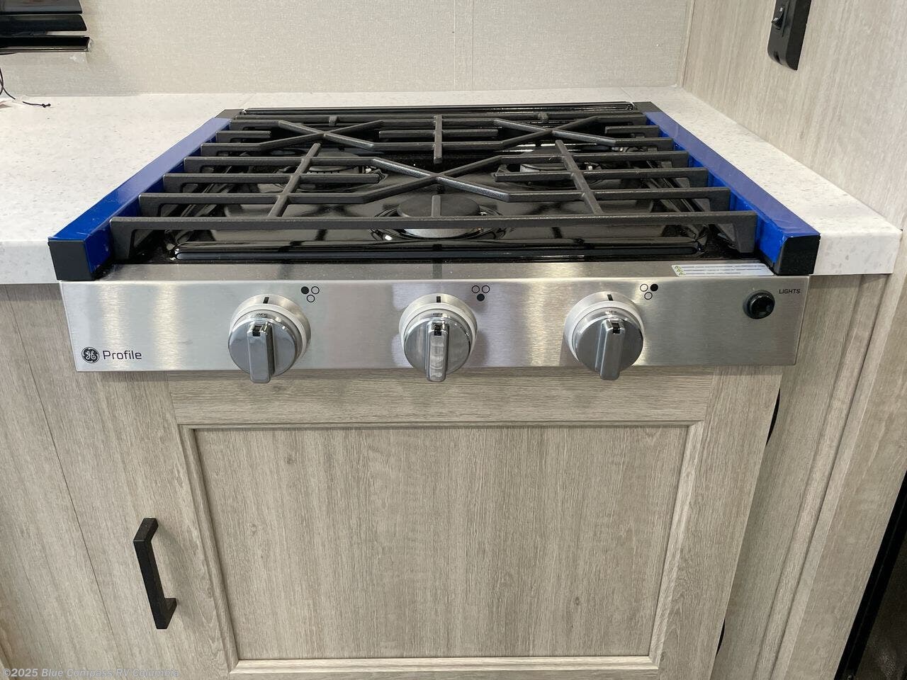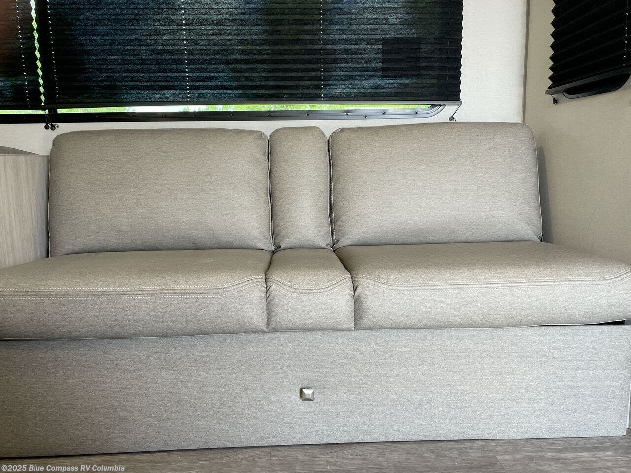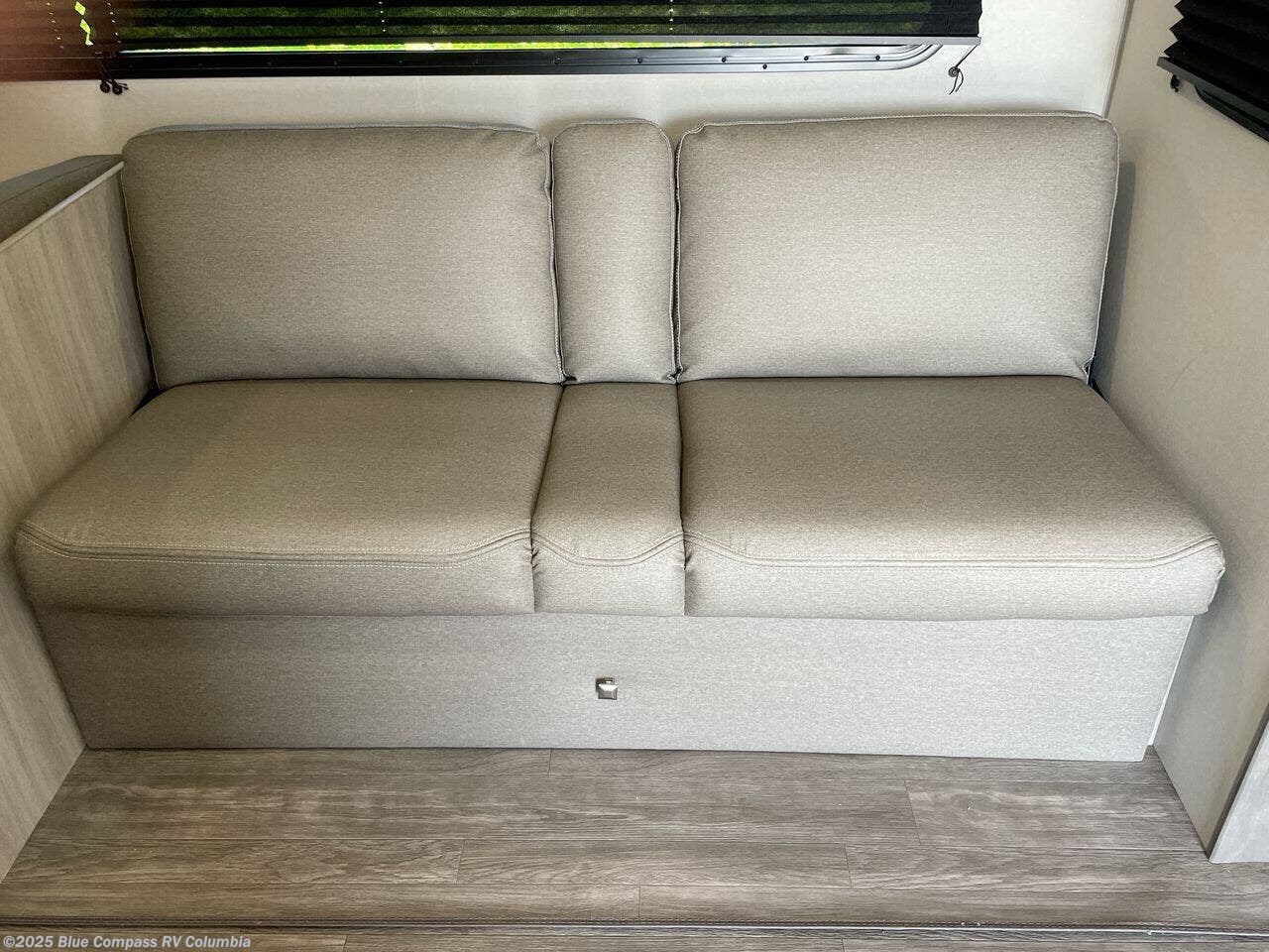 Everyone will have a comfortable time camping in this travel trailer! It features a set of double sized bunk beds for the kids or guests to sleep on and are conveniently next to the rear corner bathroom which has a tub/shower with a skylight above for added natural lighting. The booth dinette and sofa slide opens up the kitchen area so you have more space to prepare your best meals with the three burner cooktop. When you're ready to wind down your nights, grab a snack from the large pantry, a beverage from the 10.7 cu. ft. refrigerator, and place your drink in the cupholder/arm rest of the sofa while you watch a movie at the entertainment center!