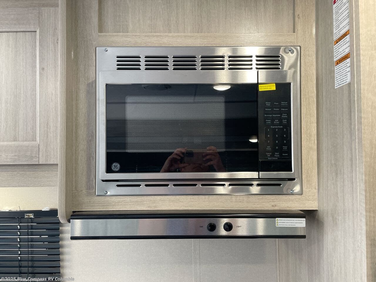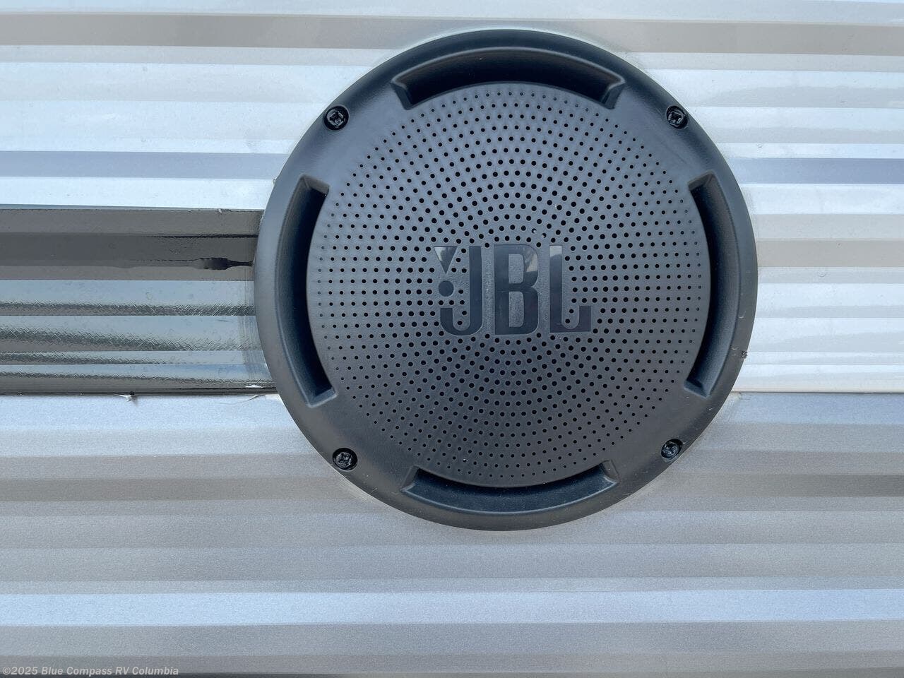 Comfortability, usability, and quality is what you will find in each one of these Forest River Aurora Light travel trailers! They are designed with a superior build and packed full with industry leading, functional, and distinctive standard features. SolidStep entrance steps and a Safe-T rail door assist on main entry door to help you safely enter and exit the unit. The diamond plate rock guard will protect your unit from road debris and the nitrogen filled radial tires, which keep their pressure longer, offer better fuel economy. You will also find upgraded JBL Elite exterior speaker outside, an electric awning with multicolor lights and remote, plus flush mount baggage doors for easy packing. The interiors are beautifully designed with matte black kitchen and bath faucets, black nightshades in the living room, and GE kitchen appliances!