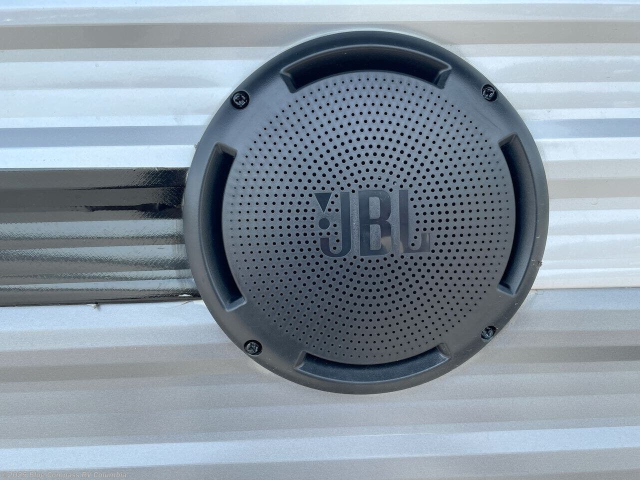Comfortability, usability, and quality is what you will find in each one of these Forest River Aurora Light travel trailers! They are designed with a superior build and packed full with industry leading, functional, and distinctive standard features. SolidStep entrance steps and a Safe-T rail door assist on main entry door to help you safely enter and exit the unit. The diamond plate rock guard will protect your unit from road debris and the nitrogen filled radial tires, which keep their pressure longer, offer better fuel economy. You will also find upgraded JBL Elite exterior speaker outside, an electric awning with multicolor lights and remote, plus flush mount baggage doors for easy packing. The interiors are beautifully designed with matte black kitchen and bath faucets, black nightshades in the living room, and GE kitchen appliances!