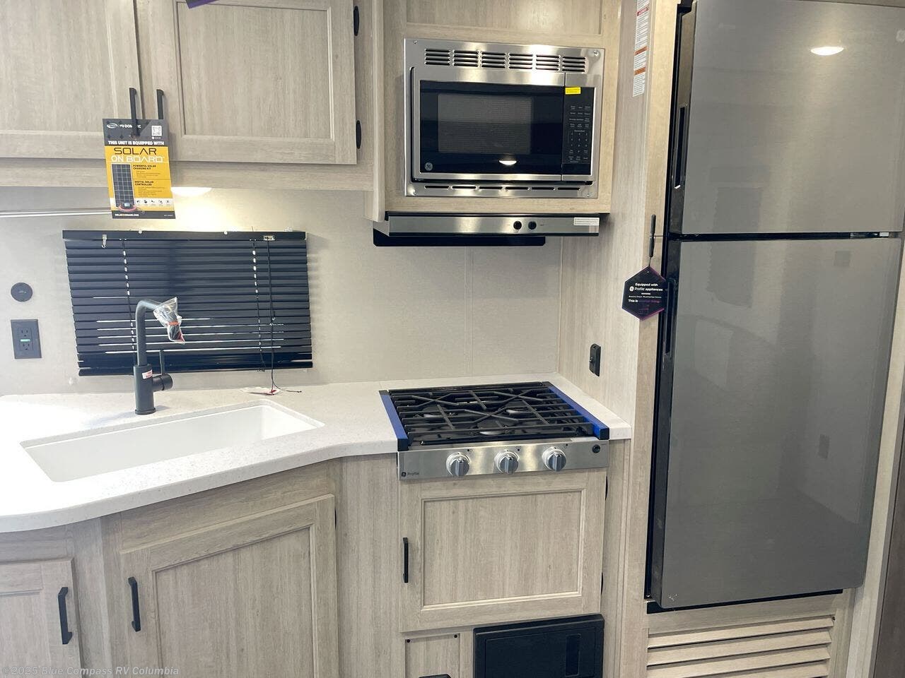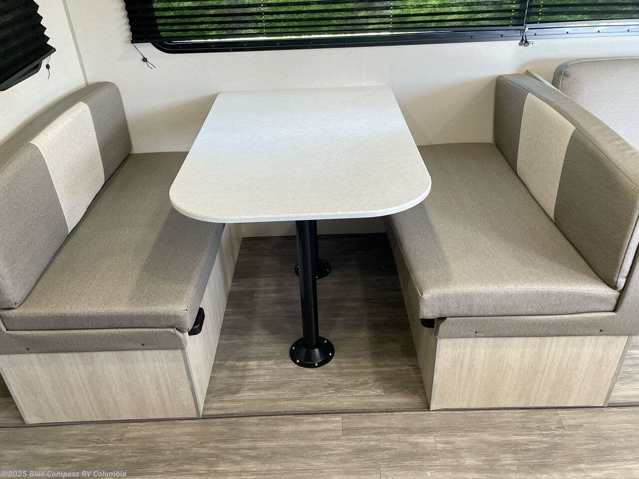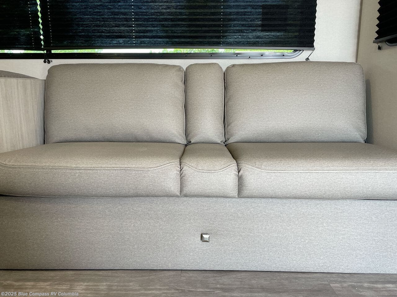 Everyone will have a comfortable time camping in this travel trailer! It features a set of double sized bunk beds for the kids or guests to sleep on and are conveniently next to the rear corner bathroom which has a tub/shower with a skylight above for added natural lighting. The booth dinette and sofa slide opens up the kitchen area so you have more space to prepare your best meals with the three burner cooktop. When you're ready to wind down your nights, grab a snack from the large pantry, a beverage from the 10.7 cu. ft. refrigerator, and place your drink in the cupholder/arm rest of the sofa while you watch a movie at the entertainment center!