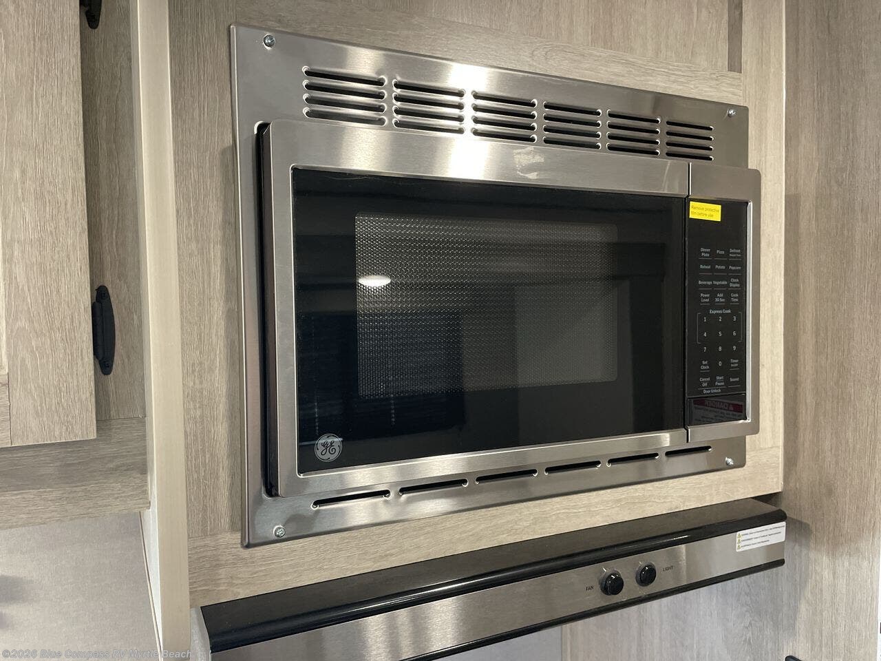 Comfortability, usability, and quality is what you will find in each one of these Forest River Aurora Light travel trailers! They are designed with a superior build and packed full with industry leading, functional, and distinctive standard features. SolidStep entrance steps and a Safe-T rail door assist on main entry door to help you safely enter and exit the unit. The diamond plate rock guard will protect your unit from road debris and the nitrogen filled radial tires, which keep their pressure longer, offer better fuel economy. You will also find upgraded JBL Elite exterior speaker outside, an electric awning with multicolor lights and remote, plus flush mount baggage doors for easy packing. The interiors are beautifully designed with matte black kitchen and bath faucets, black nightshades in the living room, and GE kitchen appliances!