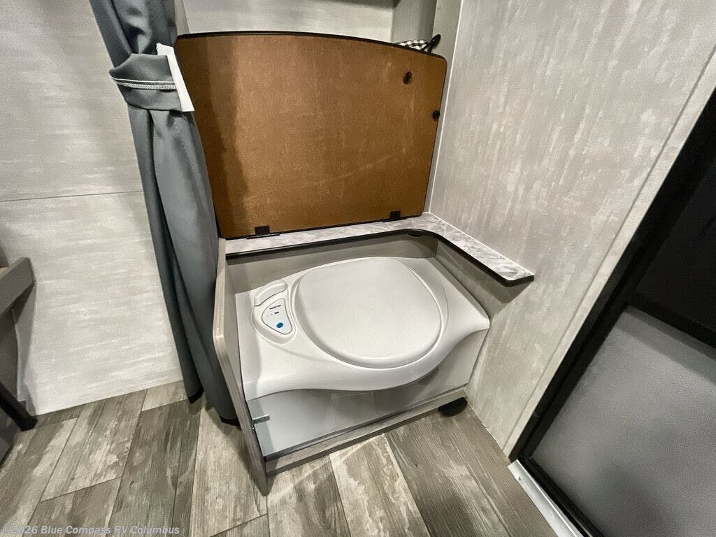When you want to explore choose this travel trailer for your basic off-road adventure needs and a bit more by offering you a 54" X 74" flip-up bed with storage beneath, and gaucho seating that pulls out into a bed for an additional camper at night. There is front and rear overhead cabinetry for storage, and a cassette toilet for added convenience especially at night. A rear hatch camp kitchen provides a place for you to create meals and snacks while you explore. There is a slide-out griddle and grill combo cooktop, a 12-volt refrigerator for your cold items, a single sink, and a microwave cabinet for quick meals. A 9' awning creates a bit of added outdoor living space where you can set up your camp chairs. You can also add an optional roof-top tent for additional sleeping.