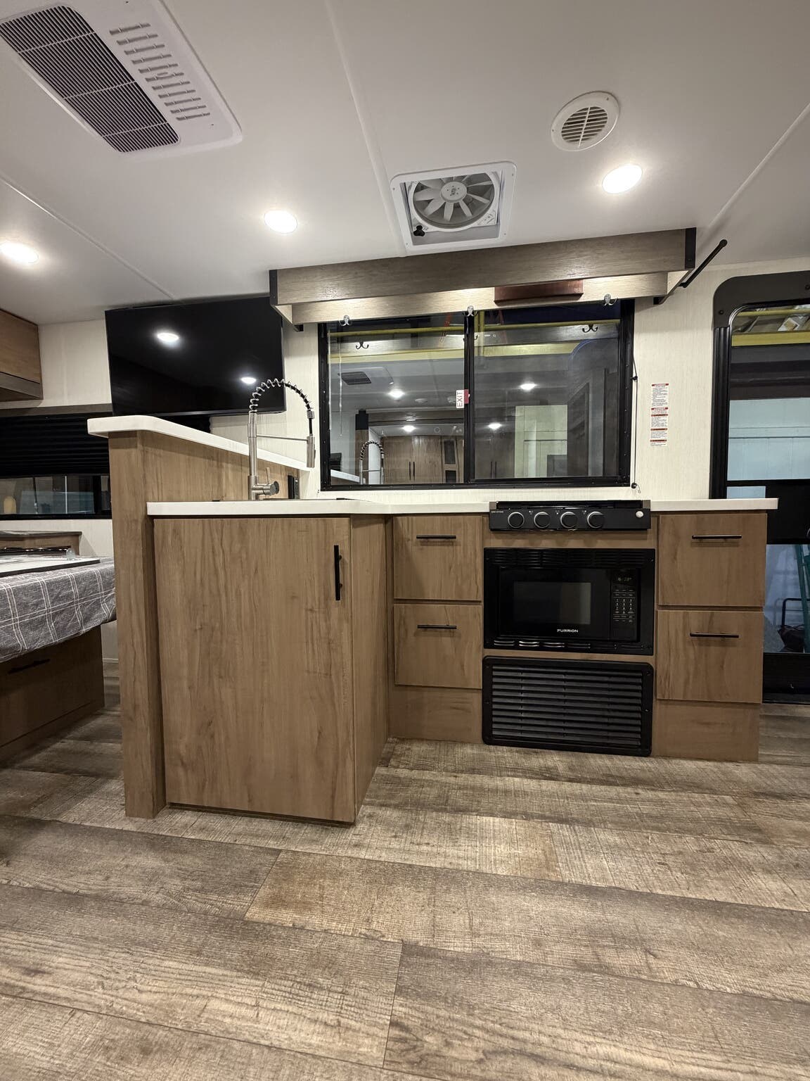 Furnace, Microwave, Refrigerator (12V), Stove Top Burner, Tankless Demand Gas Water Heater -