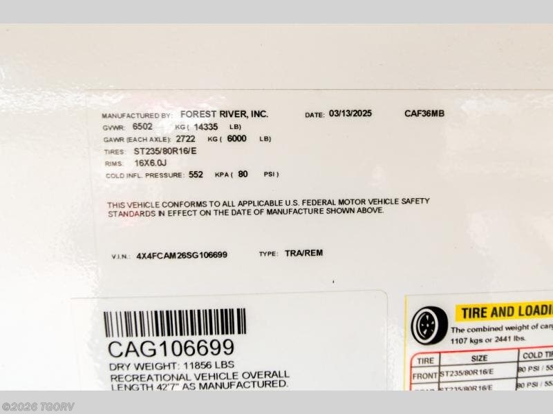2025 Forest River Cardinal 36MB Specifications