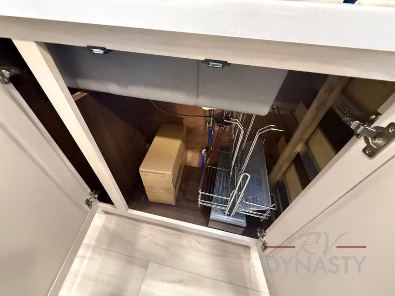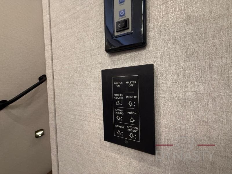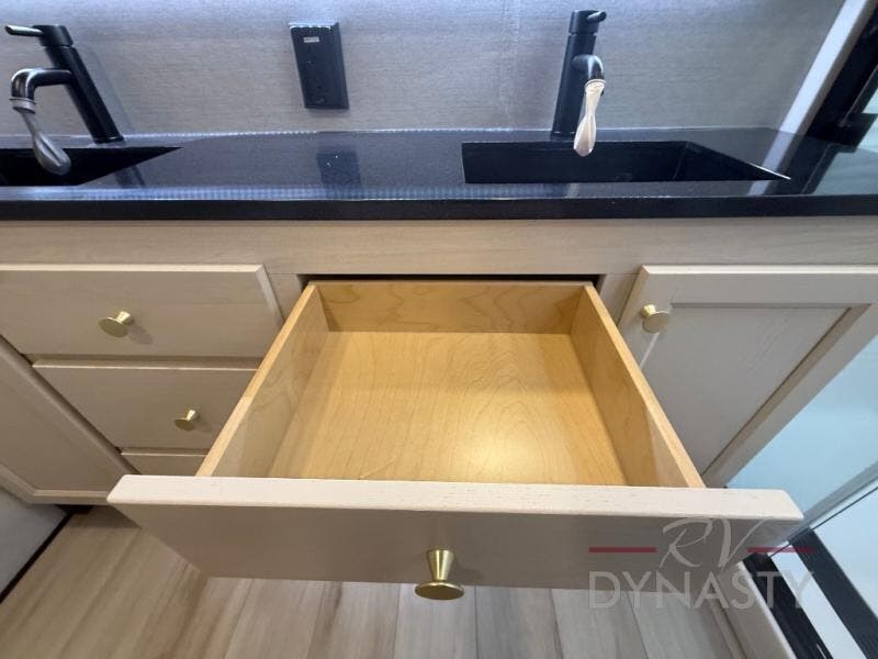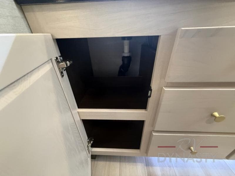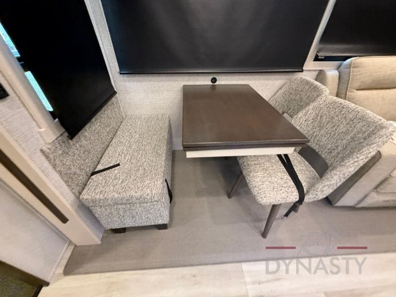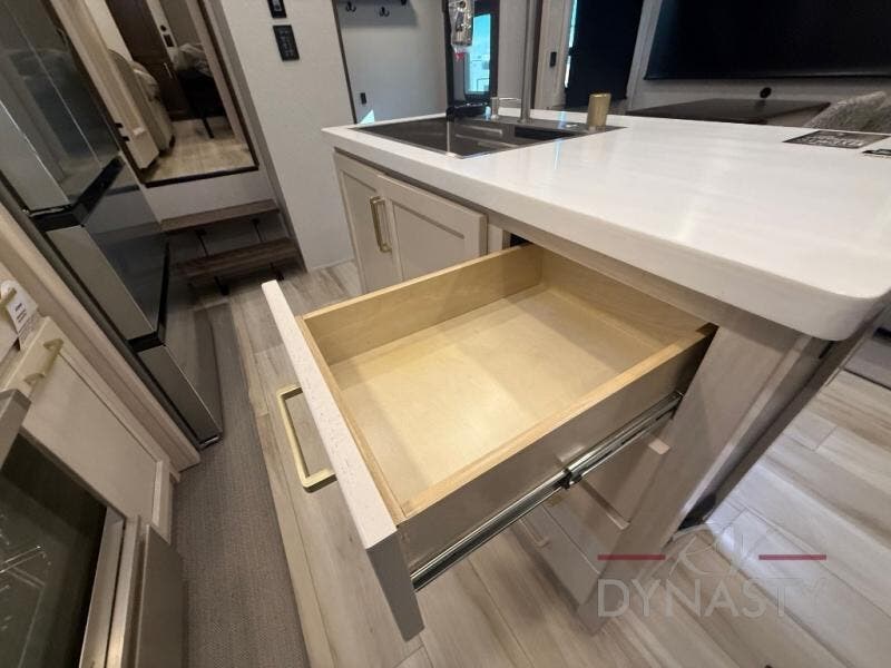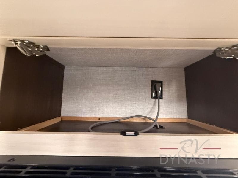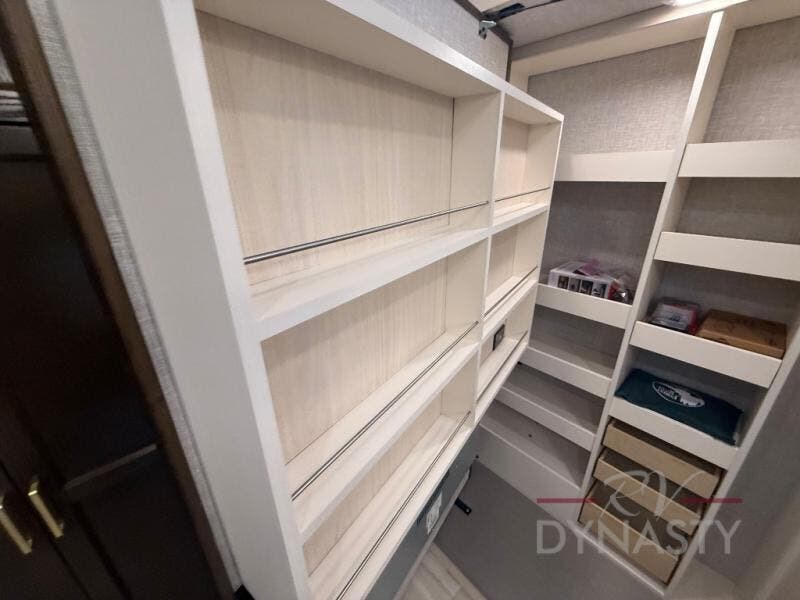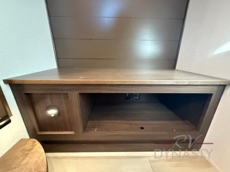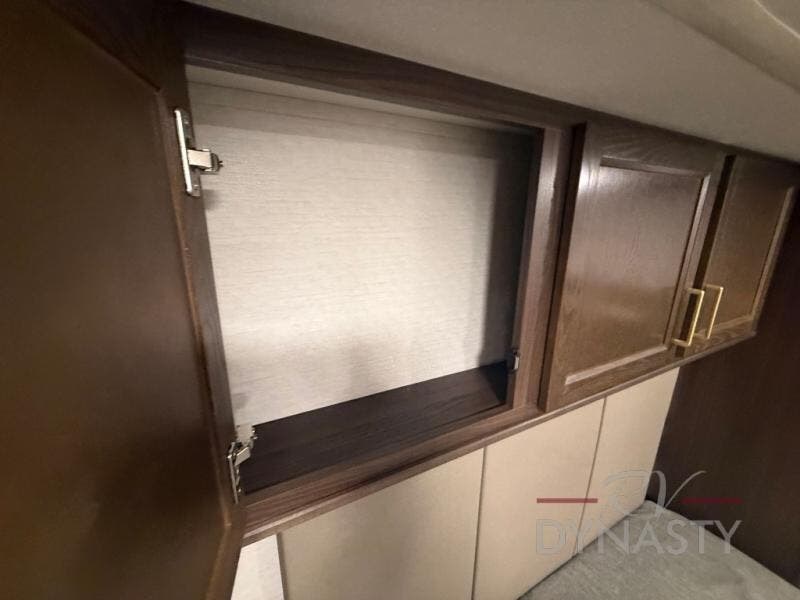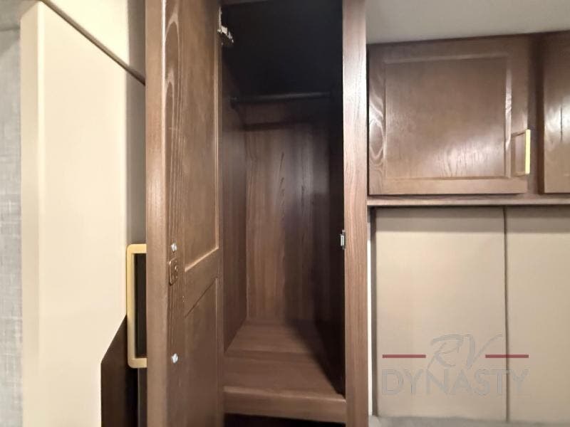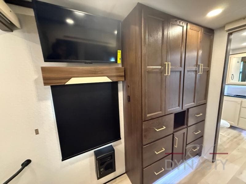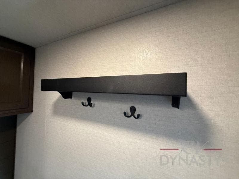 You won't believe all this fifth wheel has to offer! There is a convenient mud room right as you enter the unit where you can use the bench to take your shoes off and not drag dirt in the living areas. The front bedroom includes a jackknife sofa slide out, a half bath, plus a Murphy bed so this room can be used as a guest room! And the loft access is in this room to house more guests or use as storage space. Your crew will love to meet in the middle combined kitchen and living area with power theater seats, a wall mounted dining table with an extension and an ottoman, plus a kitchen island with a fold-down breakfast counter. There is also a Murphy pantry hidden behind the entertainment center and all the appliances needed to make meals each day. You will be met with comfort in the master bedroom that includes a king bed slide out, a dresser and a TV, plus a full rear bath with dual bath sinks. You will also find a shower with a seat, washer/dryer prep, and drop-down storage under the rear bedroom/bathroom so nothing gets left behind!
