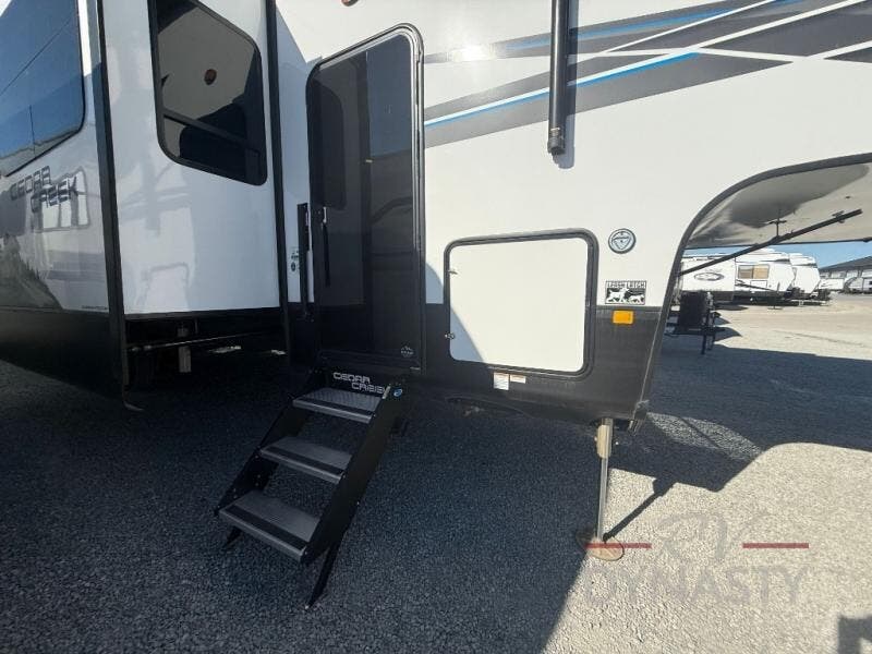 With any Cedar Creek fifth wheel by Forest River, you will find a quality-built RV with your comfort in mind! The all-aluminum super structure on 16" centers or less will provide a solid foundation to your fifth wheel, and the 3M bonded sidewalls will hold up over years of use. Each model also includes a Road Warrior suspension for smooth towing, a 21,000 lb. Rhino box hitch, and a new 101" wide body frame. Inside, you'll enjoy walnut/two tone wooden cabinets and fascias, day/night roller shades, motion lighting in the bath and bedroom closet, plus many more comforts. The new CradlePoint WiFi/5G antenna and Day 1 connectivity will help keep you connected as you travel, and the "Rich Solar" 200W solar panel will give you off-grid capabilities!