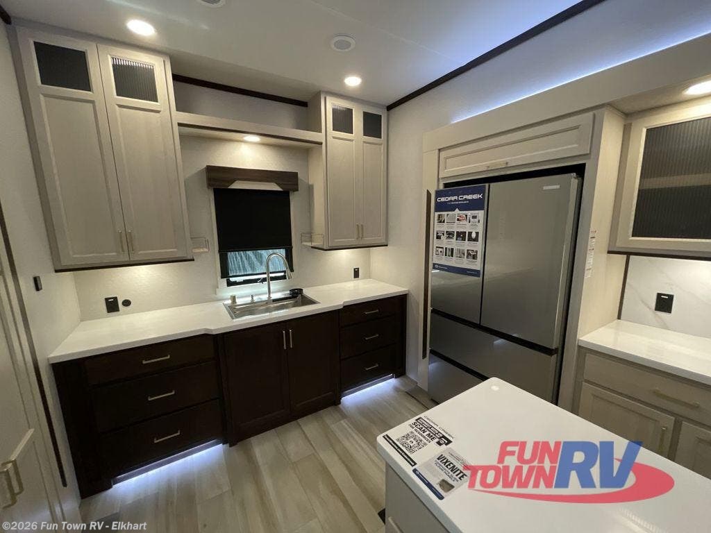 With any Cedar Creek fifth wheel by Forest River, you will find a quality-built RV with your comfort in mind! The all-aluminum super structure on 16" centers or less will provide a solid foundation to your fifth wheel, and the 3M bonded sidewalls will hold up over years of use. Each model also includes a Road Warrior suspension for smooth towing, a 21,000 lb. Rhino box hitch, and a new 101" wide body frame. Inside, you'll enjoy walnut/two tone wooden cabinets and fascias, day/night roller shades, motion lighting in the bath and bedroom closet, plus many more comforts. The new CradlePoint WiFi/5G antenna and Day 1 connectivity will help keep you connected as you travel, and the "Rich Solar" 200W solar panel will give you off-grid capabilities!