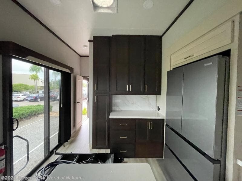 Spend some time getting to know your family a little bit better in this Cedar Creek Cottage destination trailer! You will have plenty of space to do all sorts of indoor activities with the opposing slides and king bed slide for added space, and the free-standing table with chairs has an extension that you can use if you are working on a bigger puzzle or have guests over for dinner. The kitchen features everything you need to create meals for your whole family just like at home. You will love the 18 cu. ft. 12 volt refrigerator so you can stock-up at the grocery store. The Murphy pantry also features all the space needed to store many treats, and you can add an optional dishwasher to help you clean up much faster.