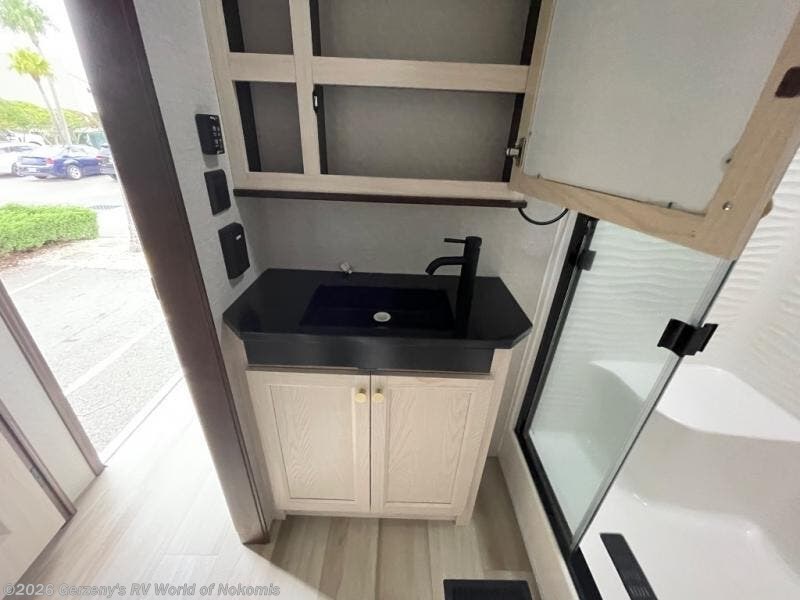 With any Cedar Creek Cottage destination trailer by Forest River, you can enjoy extended stays with residential features at the location of your choice! Each model is built with 3M bonded sidewalls that grow stronger with age and are resistant to UV, heat, oil, moisture, and more. There is also an AlphaPly TPO roof membrane, detachable entry steps, and new waterproof and bug proof Vixenite slide room floor panels for added durability. Head inside where you'll find residential dovetail, self-closing drawers, flush floor slides in the kitchen and living area, a residential style headboard and luxurious bedding decor, and extra storage for linens in the bedroom and bath. Each model is also pre-wired for satellite to the roof, and you can stay connected with the new Cradle Point WiFi/5G antenna and Day 1 connectivity.