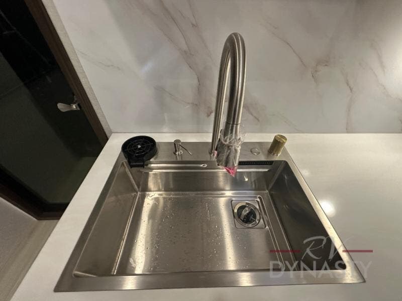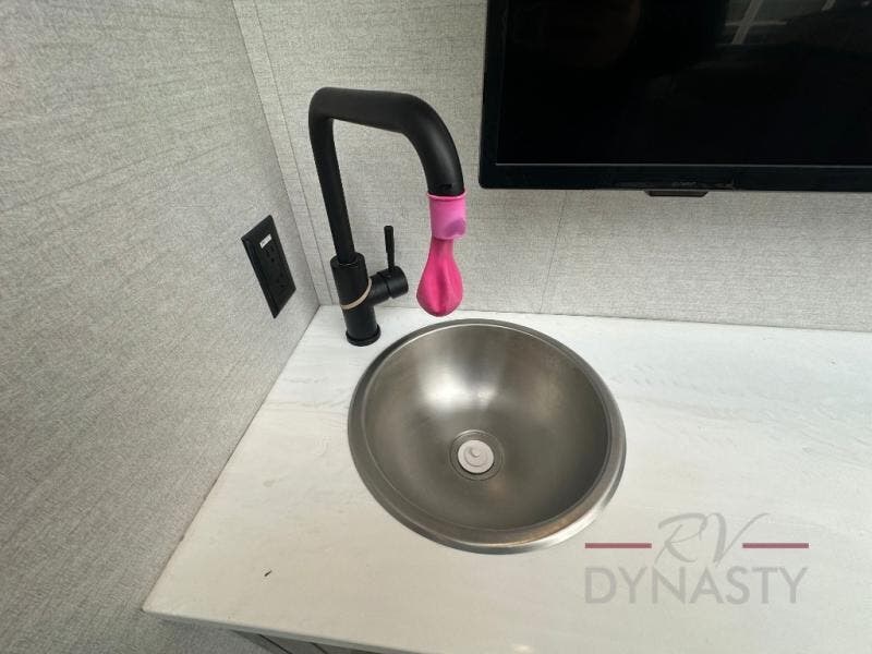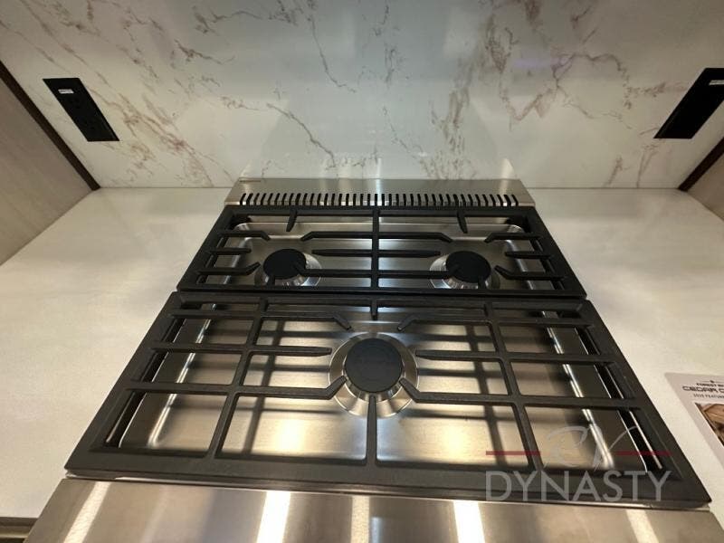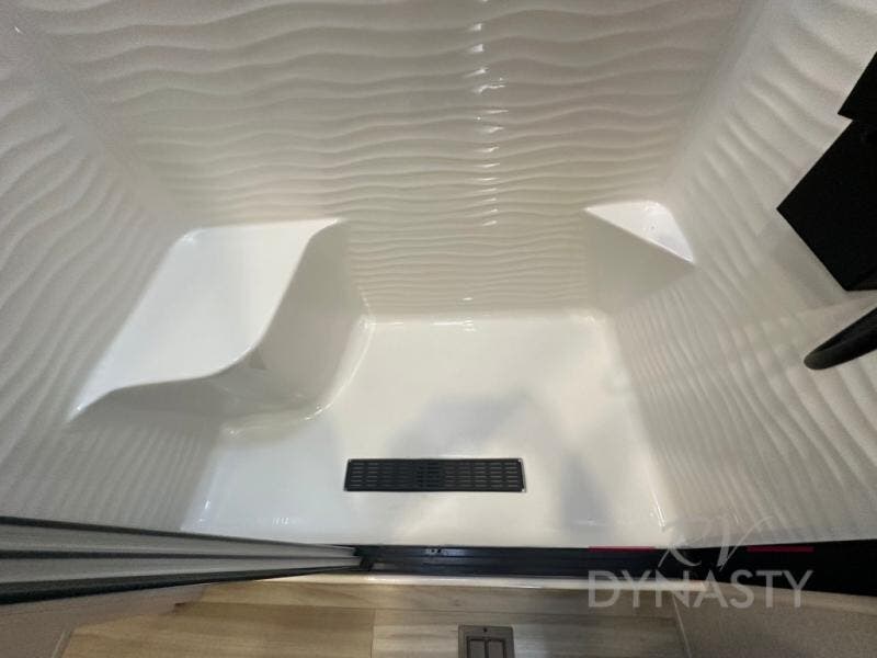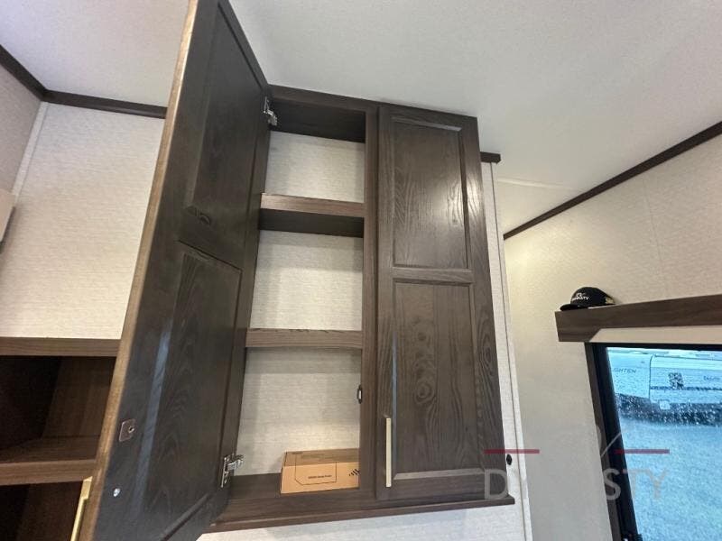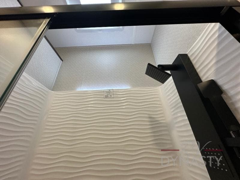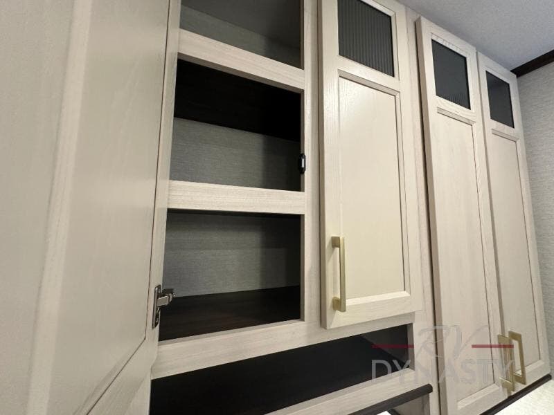 At-home comforts are found in this double slide out destination trailer! With dual entry doors, you can enter in through the rear patio deck and glass door or the main living area through sliding patio doors. The combined kitchen and living room includes a large slide for ample space to move about, along with an L-shaped sectional sofa, a waterfall island with two seats, and all the kitchen appliances to cook meals each day. There is even a dishwasher option if you want to make cleaning up easier. A full bath will let you clean up each day, and the front private bedroom will feel just like home with its king bed slide, front wardrobe with sliding doors, and dresser with a TV above. There is also washer and dryer prep if you want to add those appliances!