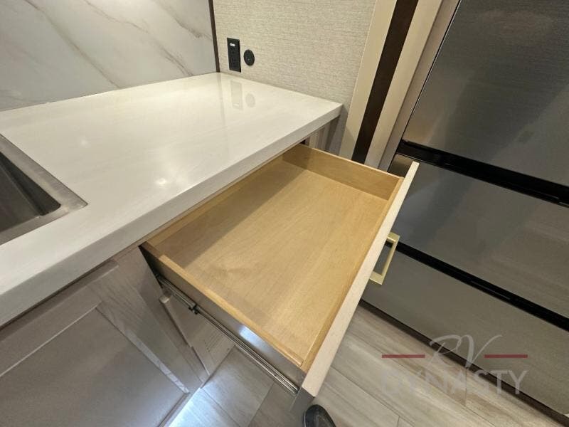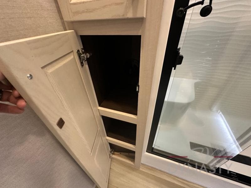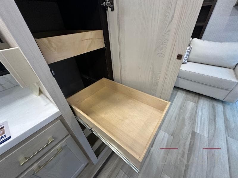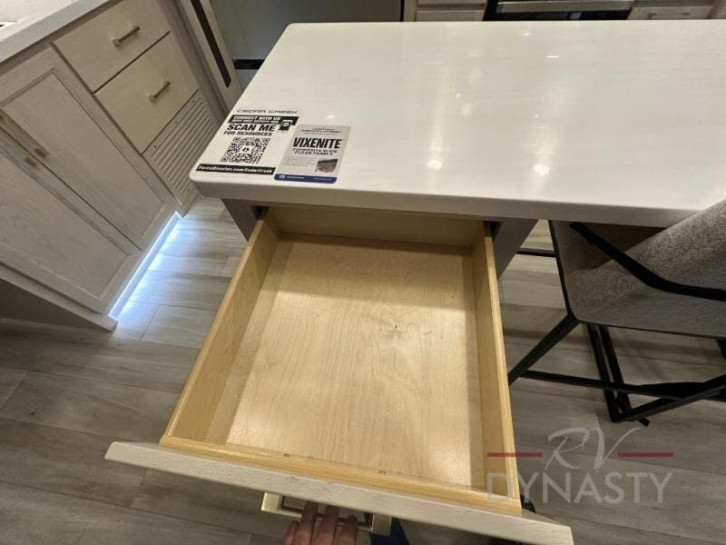 With any Cedar Creek Cottage destination trailer by Forest River, you can enjoy extended stays with residential features at the location of your choice! Each model is built with 3M bonded sidewalls that grow stronger with age and are resistant to UV, heat, oil, moisture, and more. There is also an AlphaPly TPO roof membrane, detachable entry steps, and new waterproof and bug proof Vixenite slide room floor panels for added durability. Head inside where you'll find residential dovetail, self-closing drawers, flush floor slides in the kitchen and living area, a residential style headboard and luxurious bedding decor, and extra storage for linens in the bedroom and bath. Each model is also pre-wired for satellite to the roof, and you can stay connected with the new Cradle Point WiFi/5G antenna and Day 1 connectivity.