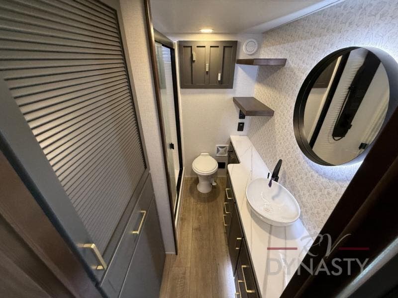 With any Cedar Creek Cottage destination trailer by Forest River, you can enjoy extended stays with residential features at the location of your choice! Each model is built with 3M bonded sidewalls that grow stronger with age and are resistant to UV, heat, oil, moisture, and more. There is also an AlphaPly TPO roof membrane, detachable entry steps, and new waterproof and bug proof Vixenite slide room floor panels for added durability. Head inside where you'll find residential dovetail, self-closing drawers, flush floor slides in the kitchen and living area, a residential style headboard and luxurious bedding decor, and extra storage for linens in the bedroom and bath. Each model is also pre-wired for satellite to the roof, and you can stay connected with the new Cradle Point WiFi/5G antenna and Day 1 connectivity.