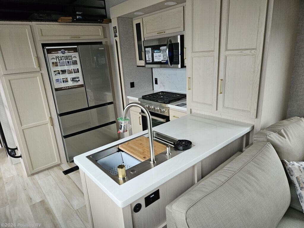 Introducing the 2025 Forest River Cedar Creek Cottage 40CFD, a remarkable RV designed for relaxation and adventure. This spacious recreational vehicle measures an impressive 42.1 feet in length, making it ideal for families who enjoy traveling without compromising on living space. The Cedar Creek Cottage is brand new, ensuring that you will enjoy modern features and top-notch amenities. It comfortably accommodates up to six people, making it perfect for family trips or gatherings with friends. Featuring two slide-outs, this RV maximizes the interior space, allowing for a generous living area that feels like home on the road. With a total dry weight of 11,977 pounds and a gross vehicle weight rating (GVWR) of 13,238 pounds, this RV is robust and capable of handling various adventures. It has a hitch weight of 1,675 pounds, which contributes to its stability during travel. The front and rear manual leveling jacks provide ease when setting up at your location. The single awning enhances outdoor enjoyment, providing ample shade while you relax outside. As a family-owned, award-winning local RV dealer with multiple locations in Sumner, Everett, Kent, and Mt. Vernon Washington, Poulsbo RV is here to help you find the perfect RV. Stock#: E5824, VIN: 4X4TCRS2XSS233814.