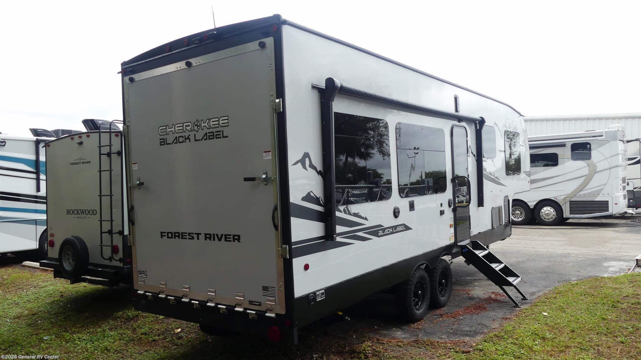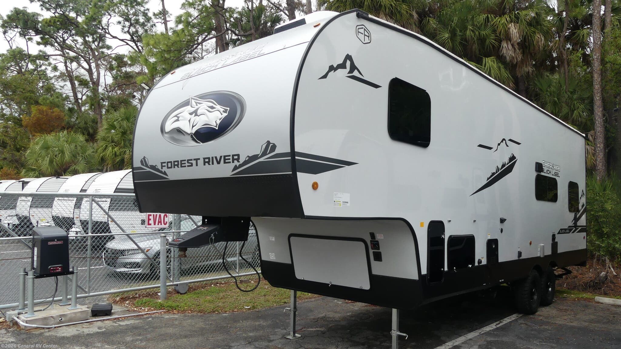 **2025 Forest River Cherokee Black Label 256RRBL Highlights:** - Spacious 14' 6? rear garage with ramp door - Dual fold-down sofas with removable table - Full bathroom with shower + seat - Front private bedroom with queen bed - Large pantry and residential-style kitche - 15' power awning with LED lighting Get ready for your next adventure with the Forest River Cherokee Black Label 256RRBL, a versatile fifth-wheel toy hauler built to handle toys and comfort. The rear garage area features a 14' 6? space perfect for ATVs, motorcycles, or camping gear — with dual fold-down sofas and a removable table that convert into extra sleeping or seating. Inside, the full bathroom includes a shower with a seat for added convenience after a day of outdoor fun. Up front, the private queen bedroom offers a restful retreat, while the kitchen and living area provide the essentials for meal prep and family time. Enjoy plenty of storage and residential comforts throughout, plus a 15' power awning that expands your living space outdoors. With durable Black Label upgrades and thoughtful design, the 256RRBL is built for weekend rides, family outings, and extended camping trips alike.