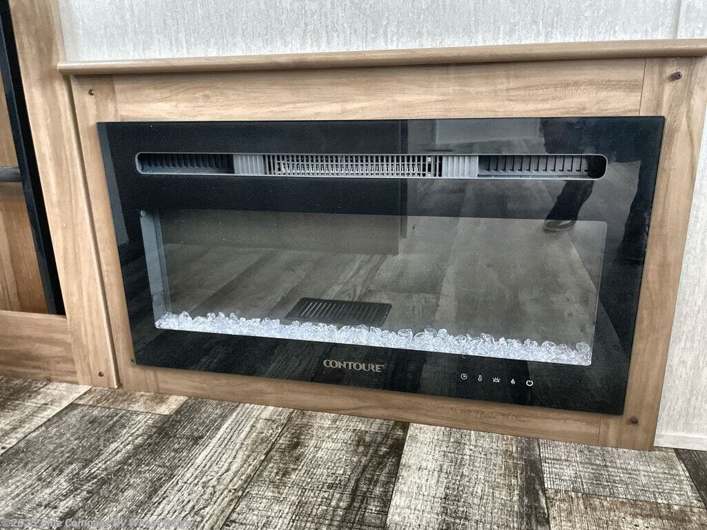 Escape your ordinary life with this innovative travel trailer! It features 64" top bunk bed above a 36" bottom bunk with wardrobes on either side of them, plus there is a wall at the foot of the beds with a fireplace on the other side. You will have your own privacy with the front private bedroom that has a walk-around queen bed with wardrobes on either side and an entrance into the dual entry bathroom which has a neo-angled shower to freshen up in each morning. The sofa and U-shaped dinette can also transform into extra sleeping spaces when you aren't using them to enjoy a meal or relax in front of the TV mount. The outdoor bar and grill comes with a 5.6 cu. ft. outdoor refrigerator and everything you need to prepare delicious meals outdoors. You even have a rear storage rack and outside storage areas to store your outdoor gear!