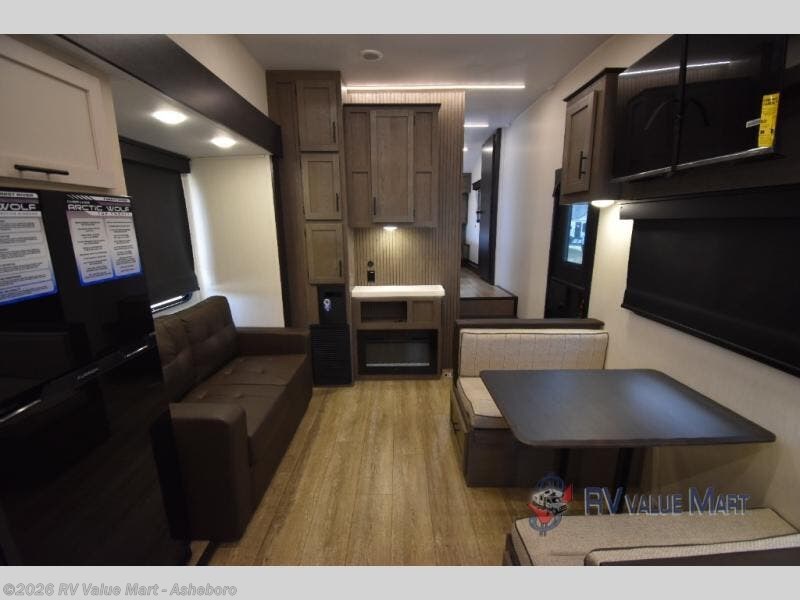 You'll have the very best time tackling outdoor adventures with the Forest River Cherokee Arctic Wolf fifth wheel! Each model has been constructed with a “ToughBend” rigid skirt metal design, Leash Latch pet safety technology, an outside shower with hot/cold water, and a 1x engineered wood “SuperTruss” roof structure with 3/8" decking for added durability. There is also an automatic leveling and stabilization system, slam latch storage doors with "Safety Stay" magnets, plus 12V heat pads on all holding tanks with help withstand colder temperatures. Inside, you'll love the solid surface kitchen countertops with underlighting, along with a carpetless floor design, and fully adjustable, slow rise, blackout roller shades. The on-demand tankless hot water heater will provide endless hot water and the central A/C unit with Quick Cool will ensure your comfort during those hot summer camping months. There are many more stand-out features found on these fifth wheels; check them out!