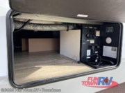 You're going to love camping in this triple slide out fifth wheel that is packed with amenities! The rear deck with a covered patio will provide a place to visit with campground neighbors, and inside, there is an L-shaped tri-fold sofa where guests can sleep. You'll find a king bed slide in the front master bedroom for you, along with a front bench seat, a bedroom fireplace, plus washer and dryer prep if you choose to add these appliances. The kitchen is any chef's dream with its large island with two chairs, pull-out countertop extension, spacious 16 cu. ft. refrigerator, plus a hidden pantry behind the TV for all the dry goods.
