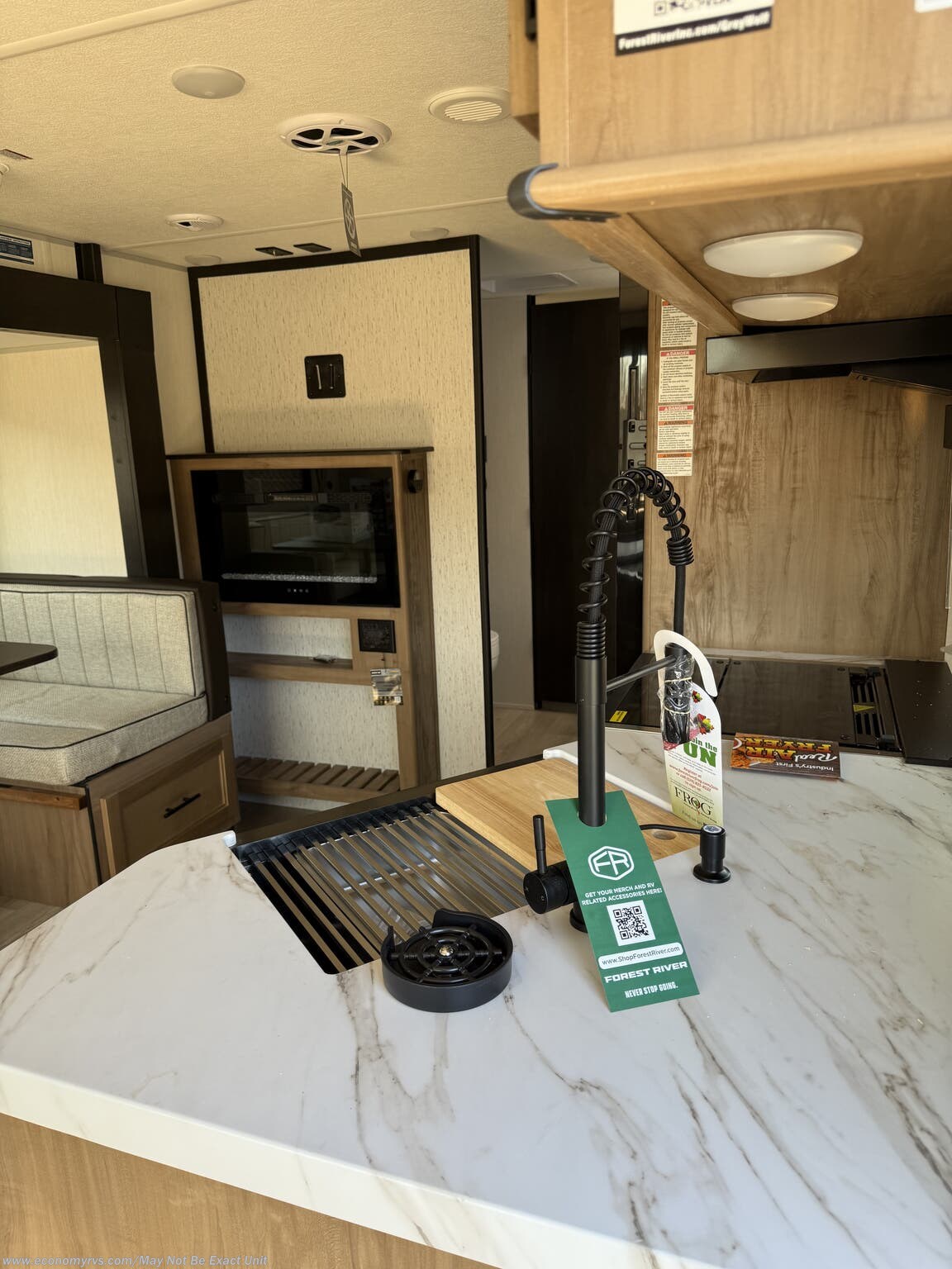 This 2025 Forest River Cherokee Grey Wolf 23MK is outfitted with all the features you need for happy camping. This 2025 Forest River Cherokee Grey Wolf 23MK welcomes you into the Forest River family! The sleep capacity allows you to bring up to 6 along on your travels in this rig. The one slide allows for easy setup and just enough extra space inside. Entertain or cook up a cozy meal just for you in this RV kitchen equipped with the fridge, oven, stove. Memories are made around the dinner table, and this u-shaped dinette is where you’ll make them. You’ll wake up feeling well-rested for your adventures in your queen bed. If you like your rig cool in the summer and warm in winter, this heating option can do the trick. Go longer without filling up thanks to the 52 gallon fresh water tanks. Outside, you’ll find awning, exterior speakers, external shower, outside kitchen, skylight, slideout and spare tire kit. Wash up from your adventures with the outside shower. The outside kitchen keeps your rig from overheating at meal time.
