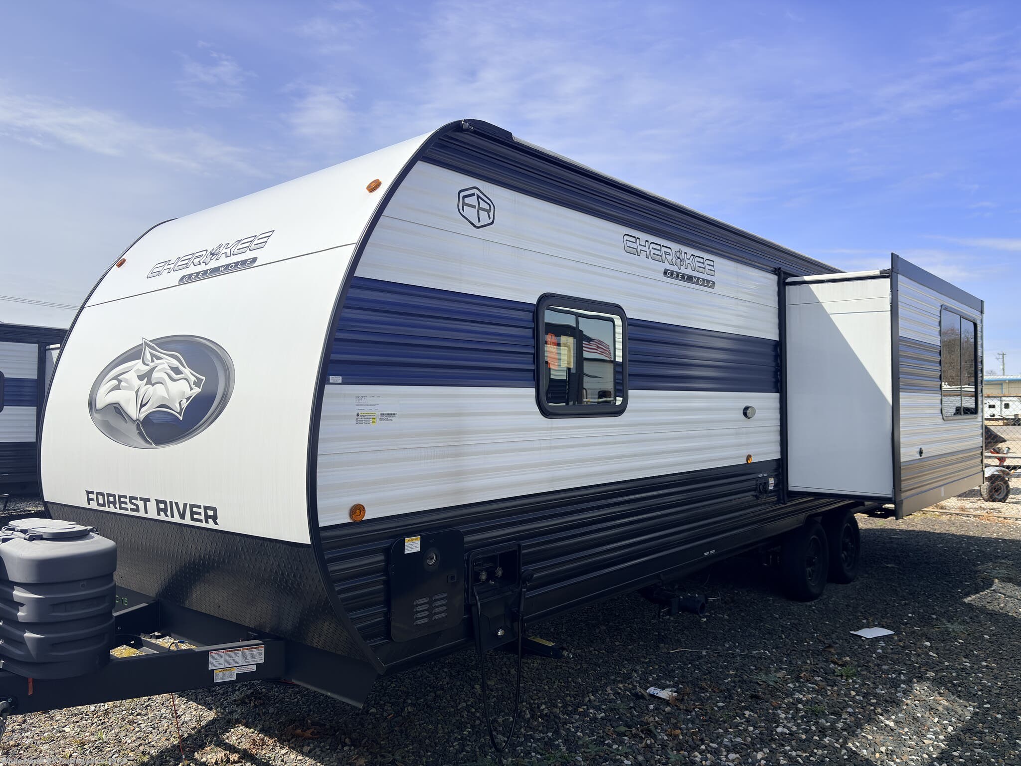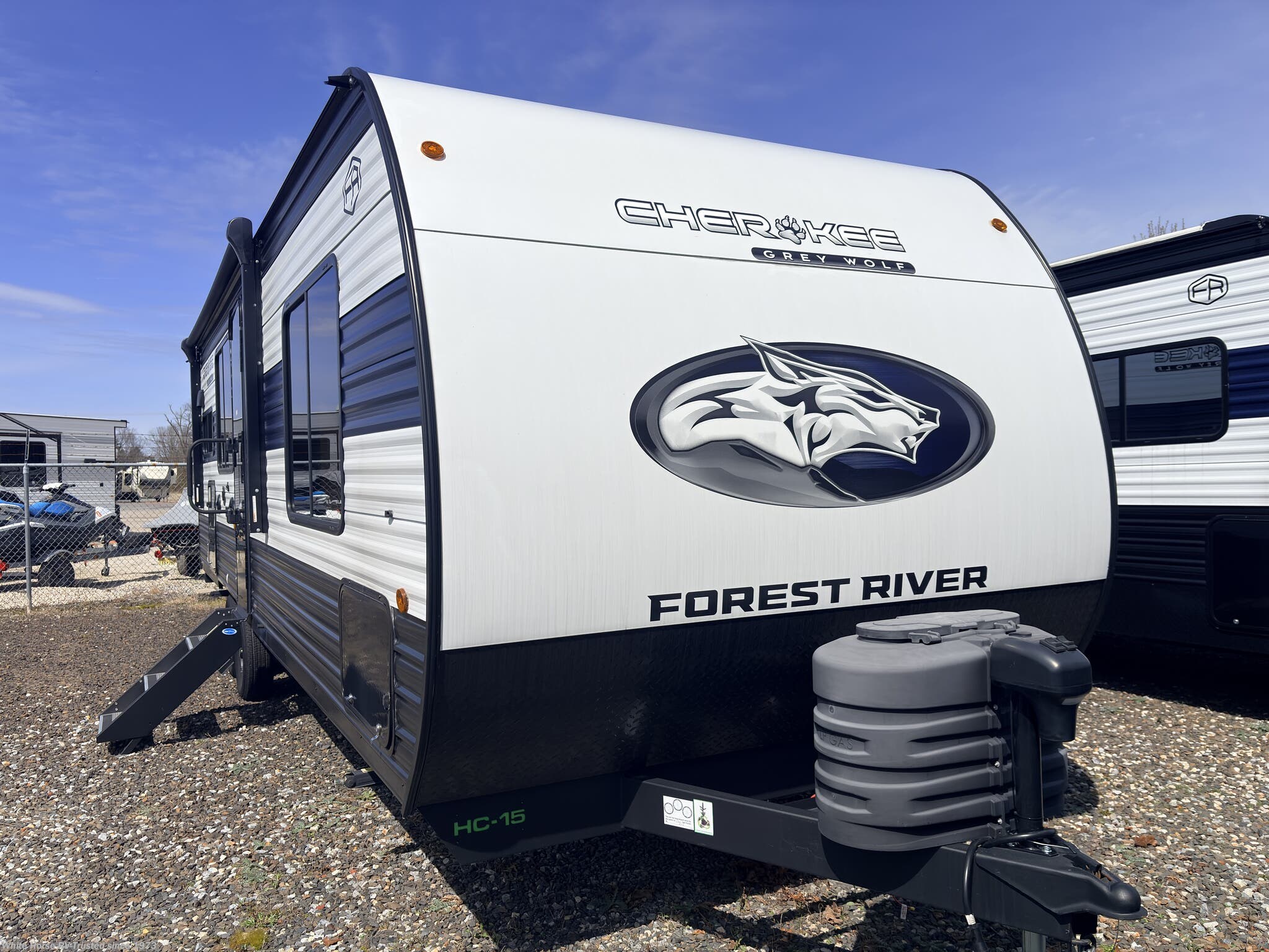 This incoming Cherokee Grey Wolf Travel Trailer (Stock #GW15322) includes the Base Camp Package, Campfire Package and Limited Package. MSRP $49,352.55.