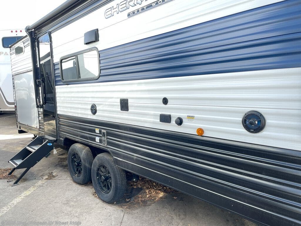Whether it's a journey that will take you to new locations or a tried-and-true getaway to that favorite and memorable destination, the Forest River Cherokee Grey Wolf travel trailers and toy haulers are going to make the trip worth it every single time! You can travel in confidence with the premium wheel package, seamless roofing membrane with heat reflectivity, Power Gear frame technology with space-saver rail design, and Cherokee back-up camera system. The Cherokee Grey Wolf's interior is highly attractive with its stainless steel kitchen suite package, premium bedding ensemble and comforter, and 8" ceiling-mounted subwoofer with accent lighting. You will also find a black waste tank flush-out kit, an outside shower with hot and cold water, an armored underbelly tank enclosure, a power tongue jack, and an RV grill quick connect.