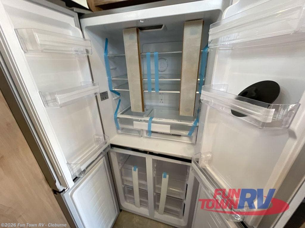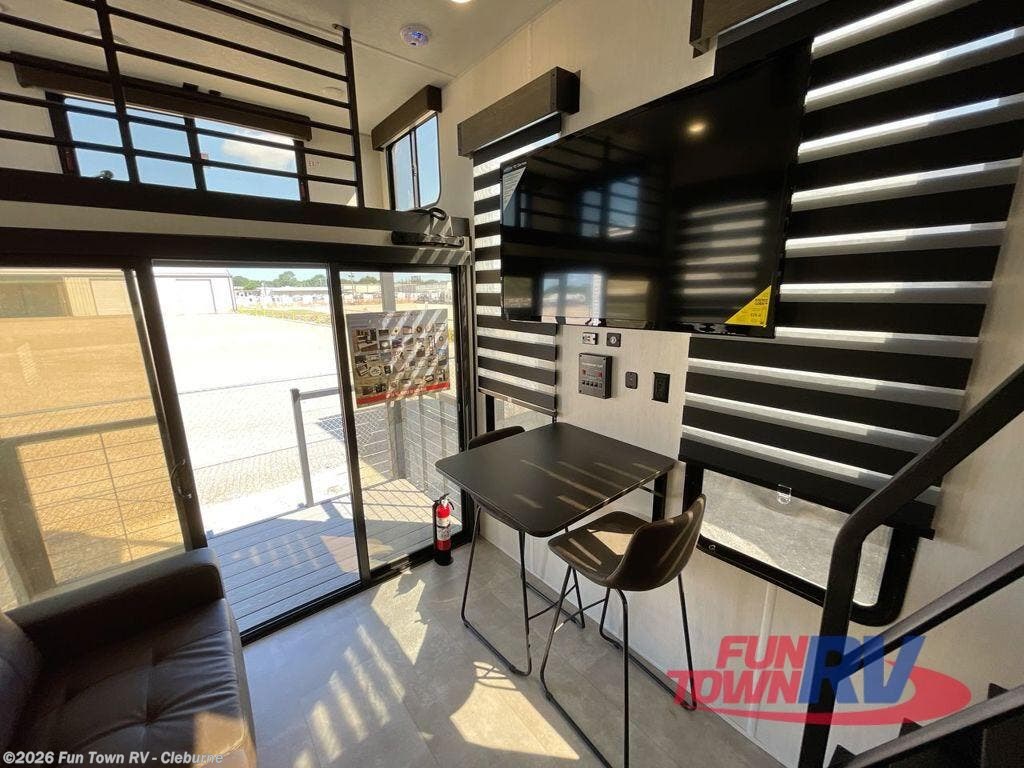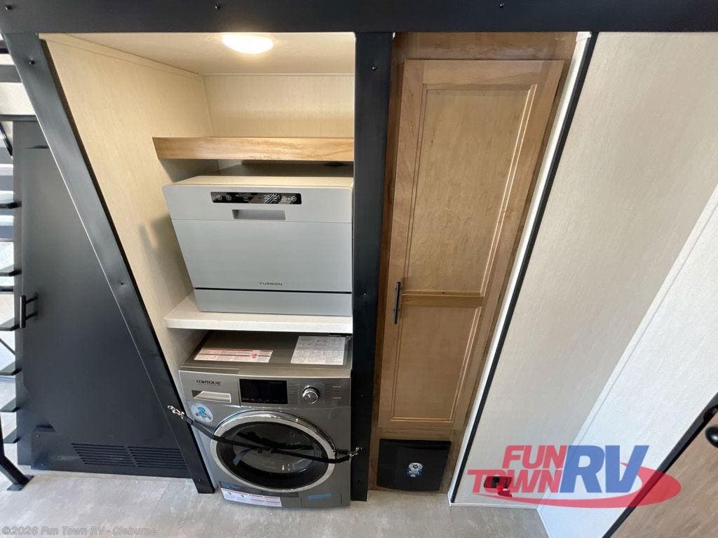 This model is similar to 16ML but larger! A bigger bathroom, king bed in the lower master, and a queen bed plus a twin bunk mat in the front loft. There is an 18 cu. ft. refrigerator so you can stock up for a week long vacation, a hide-a-bed sofa that can transform into added sleeping for guests, and a high top table with two stools to dine at. A ladder allows access into the upper front loft that is over the covered patio. The bathroom below is split with a shower on one side, and a private toilet area and sink opposite. And the view is amazing from just about anywhere inside.