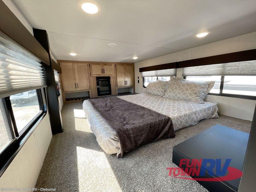 Enjoy comforts of home wherever you decide to roam in a Cherokee Timberwolf destination trailer by Forest River. The seamless roofing membrane with heat reflectivity provide a durable foundation to your RV. You will also appreciate the exclusive solar thermo controlled reflective tinted safety glass windows and an on-demand tankless water heater to make extended stays easier than ever. Inside, the night shades will provide your crew with privacy. There are also seamless countertops, along with a premium bedding ensemble and comforter, USB charging stations, a supersized central A/C unit, and many more comforts!
