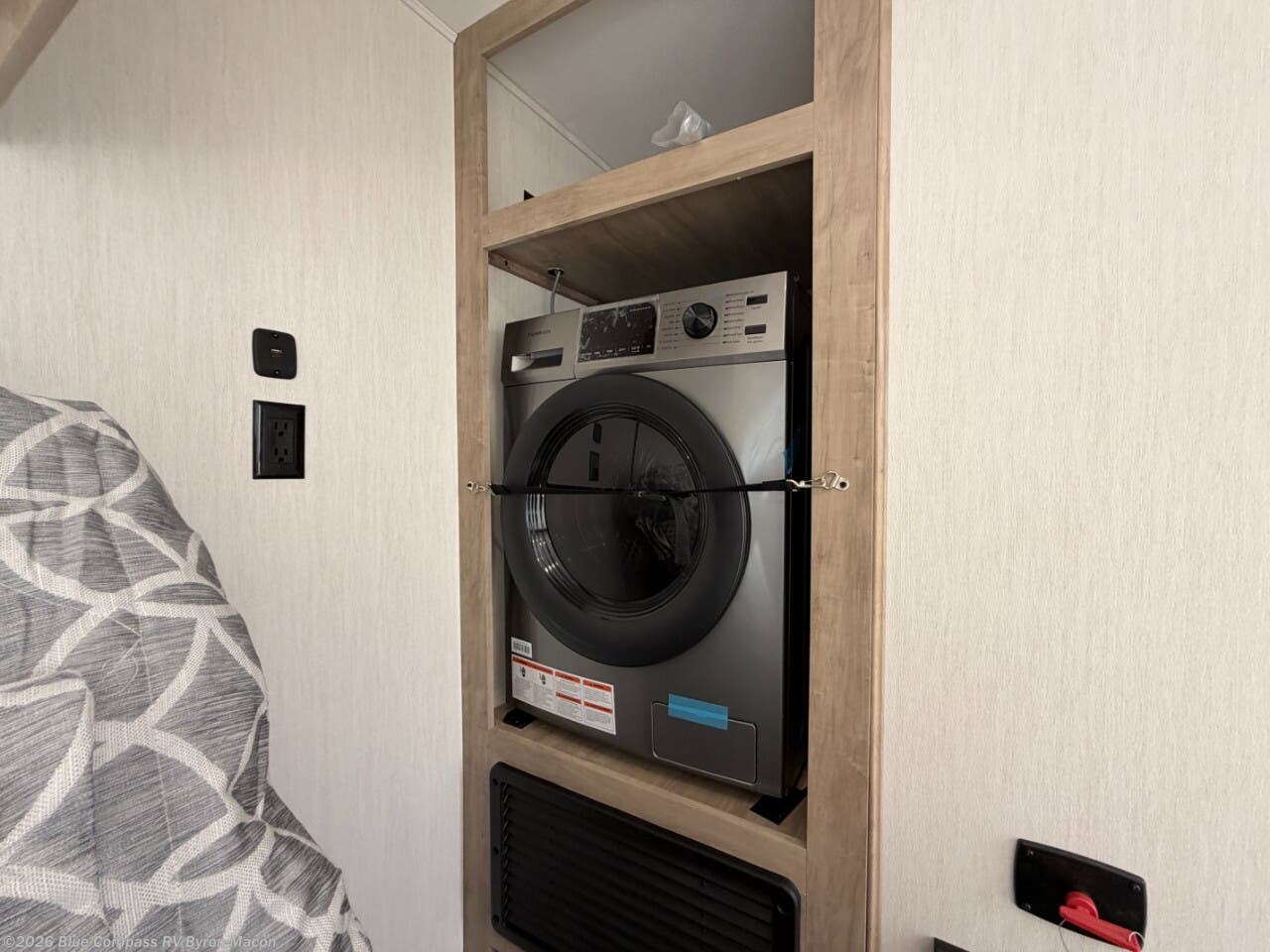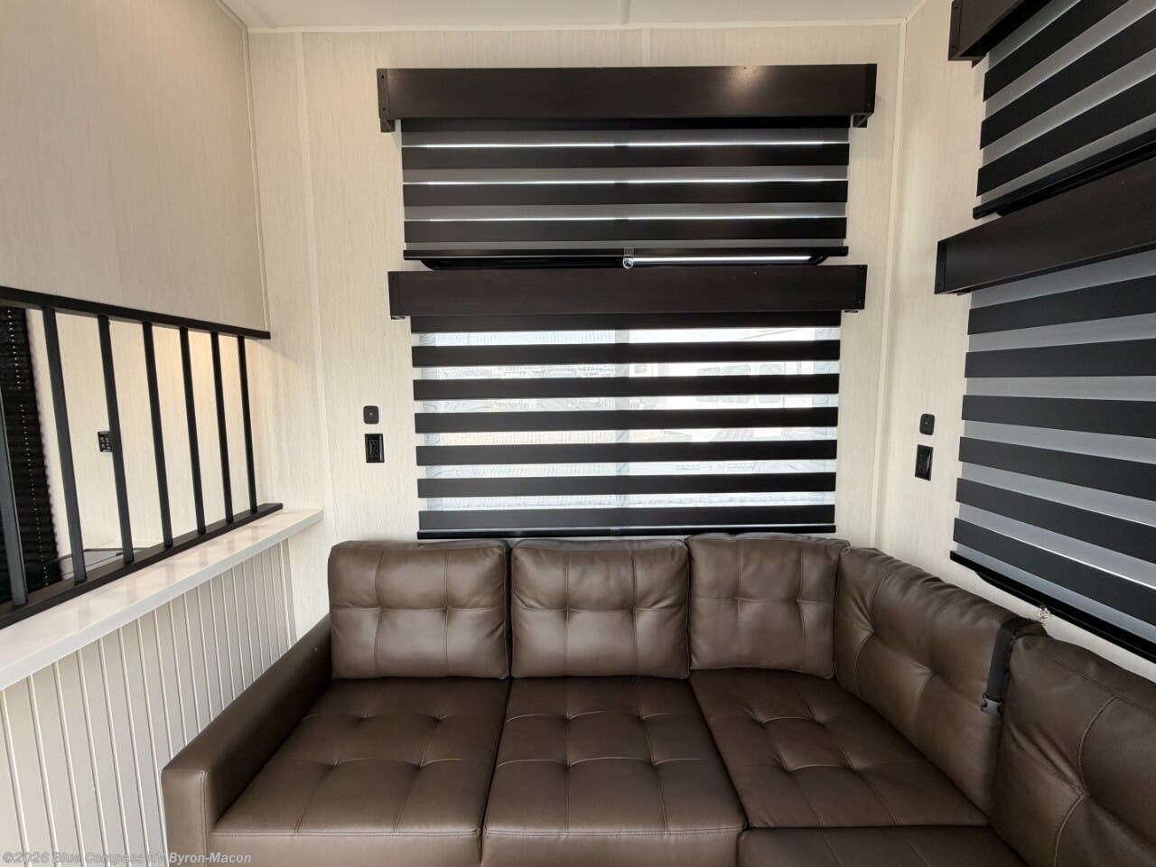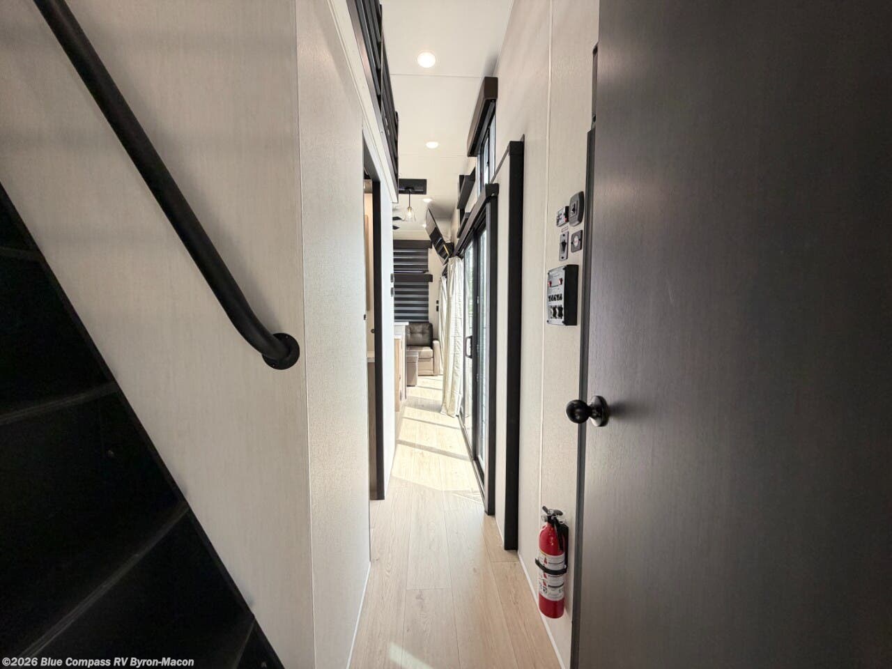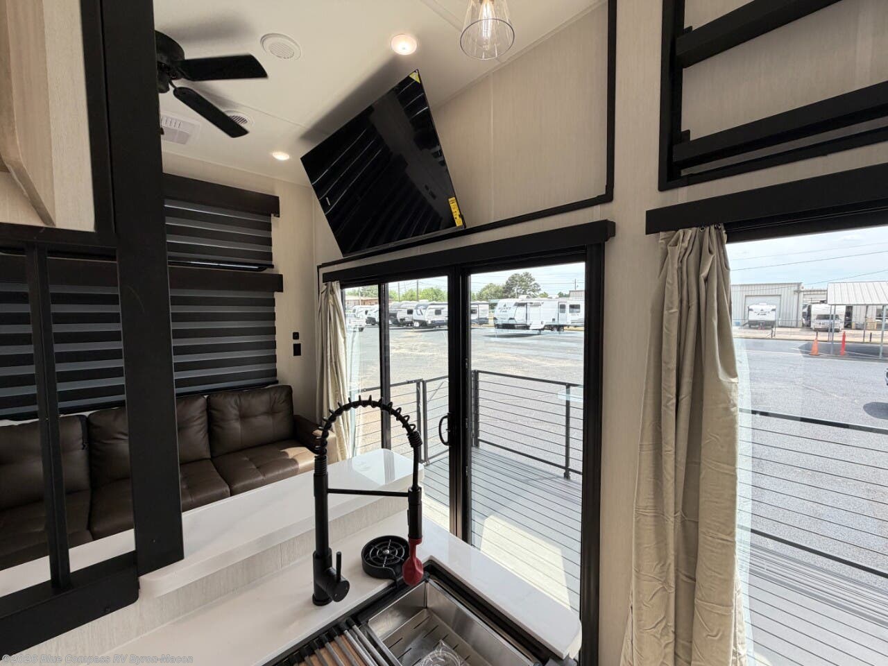 You'll feel right at home in this feature-packed destination trailer! The rear private bedroom features one of the dual entry doors, an RV king bed, and a side patio for great outdoor views! There is also a wardrobe with washer/dryer prep if you want the option to add these appliances. Above the bedroom, you'll find a loft with a queen bed, a fireplace and a storage cabinet to keep the space tidy. The chef of your group can whip up their best meals in the middle kitchen, and there is a spacious pantry to keep snacks stocked. Your crew can relax on the L-shaped sofa in the front living room, enjoy the fireplace and TV, or just take in the outdoor views provided by the huge side patio!