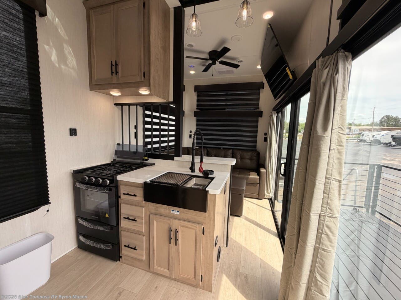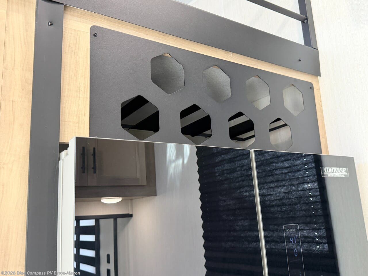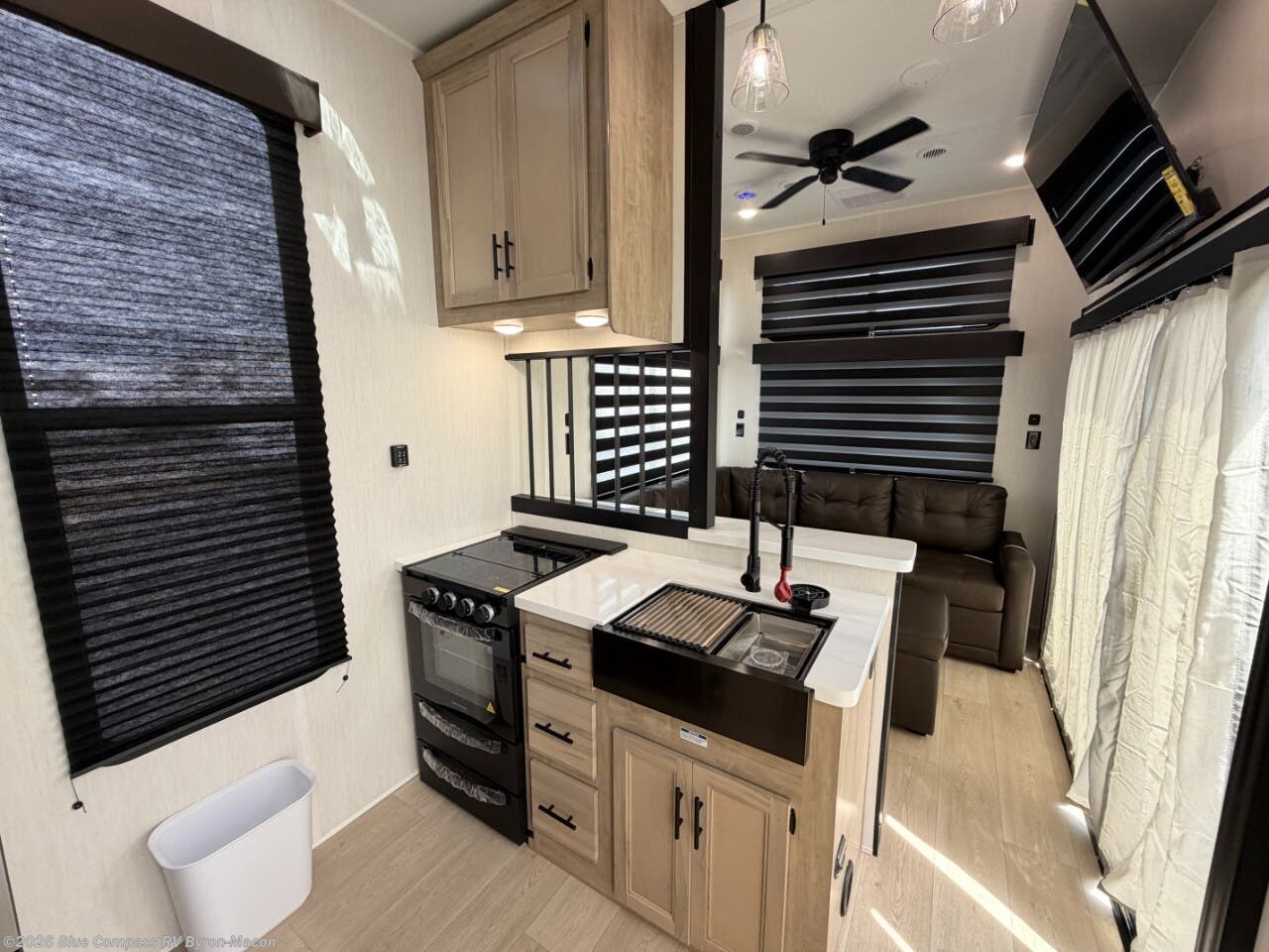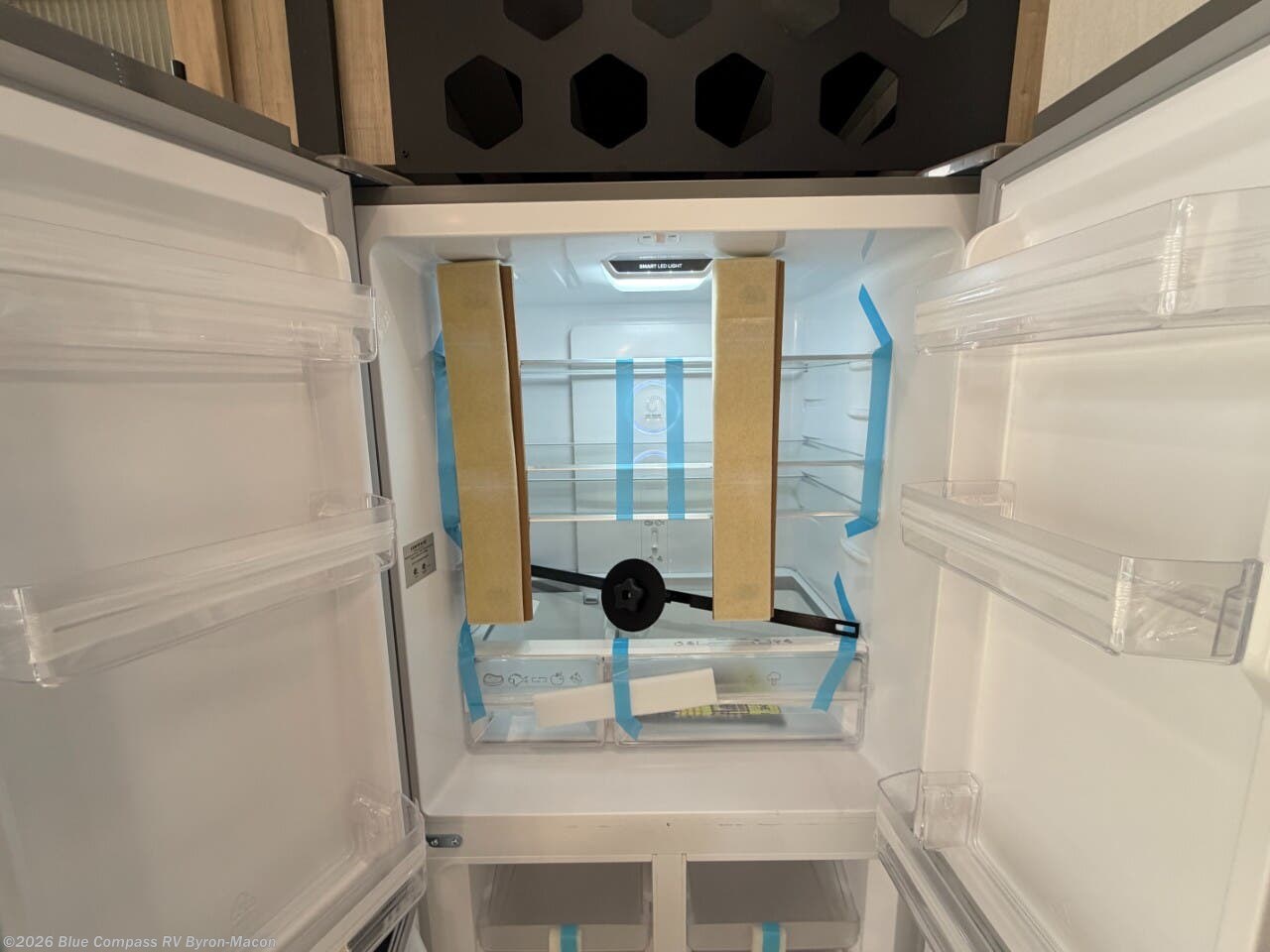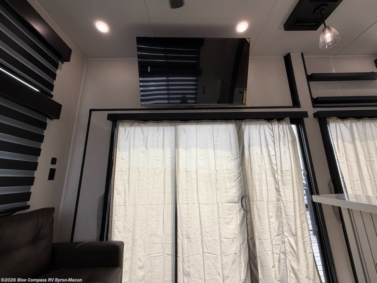 You'll feel right at home in this feature-packed destination trailer! The rear private bedroom features one of the dual entry doors, an RV king bed, and a side patio for great outdoor views! There is also a wardrobe with washer/dryer prep if you want the option to add these appliances. Above the bedroom, you'll find a loft with a queen bed, a fireplace and a storage cabinet to keep the space tidy. The chef of your group can whip up their best meals in the middle kitchen, and there is a spacious pantry to keep snacks stocked. Your crew can relax on the L-shaped sofa in the front living room, enjoy the fireplace and TV, or just take in the outdoor views provided by the huge side patio!