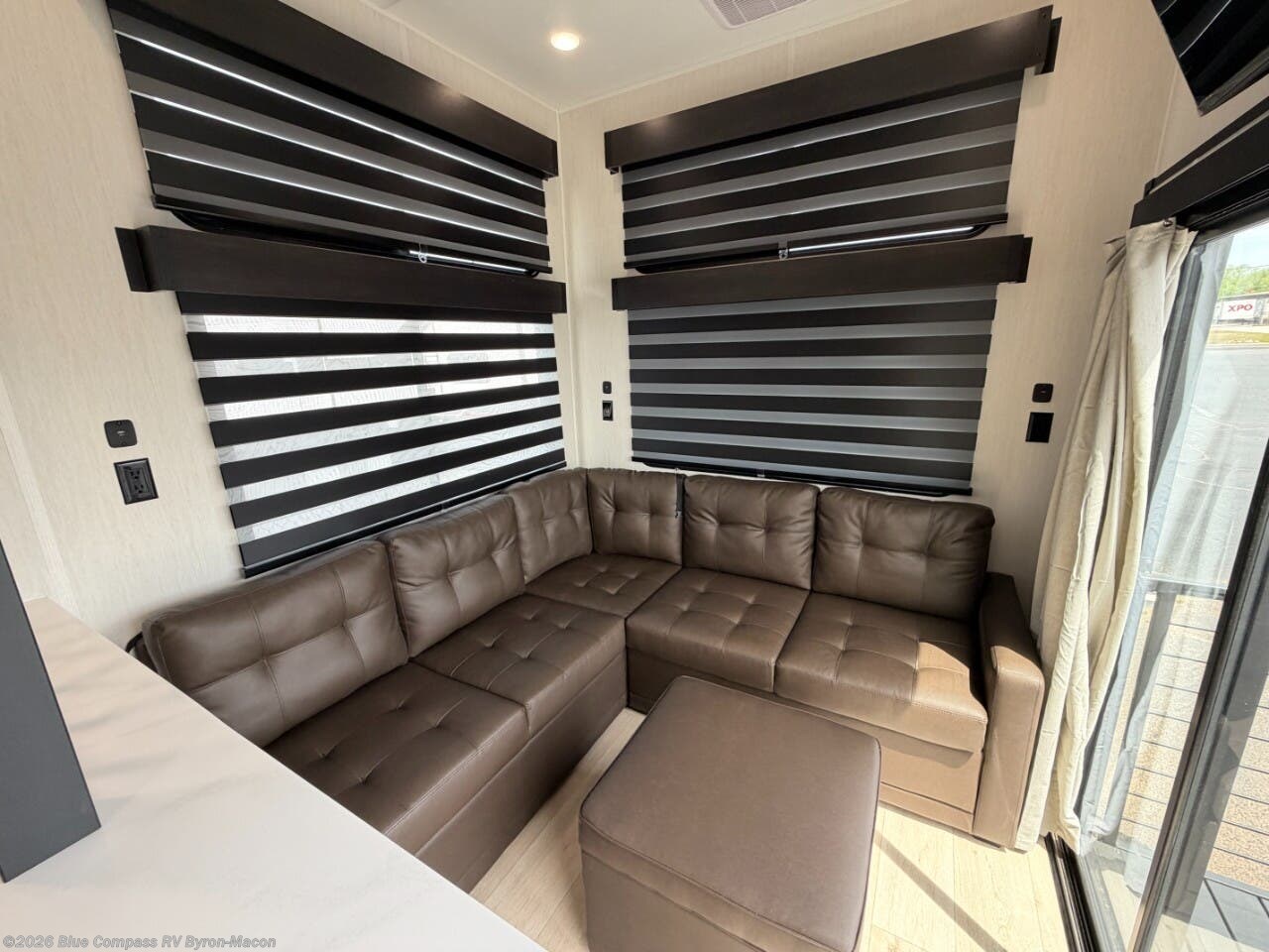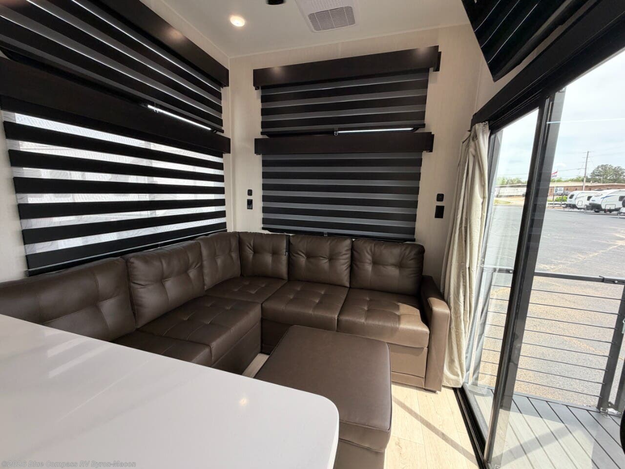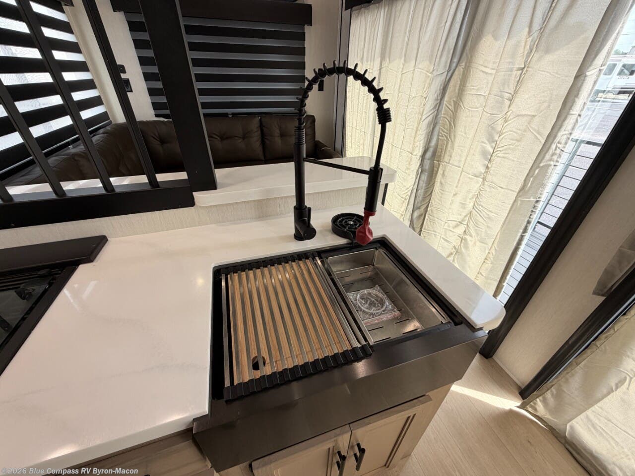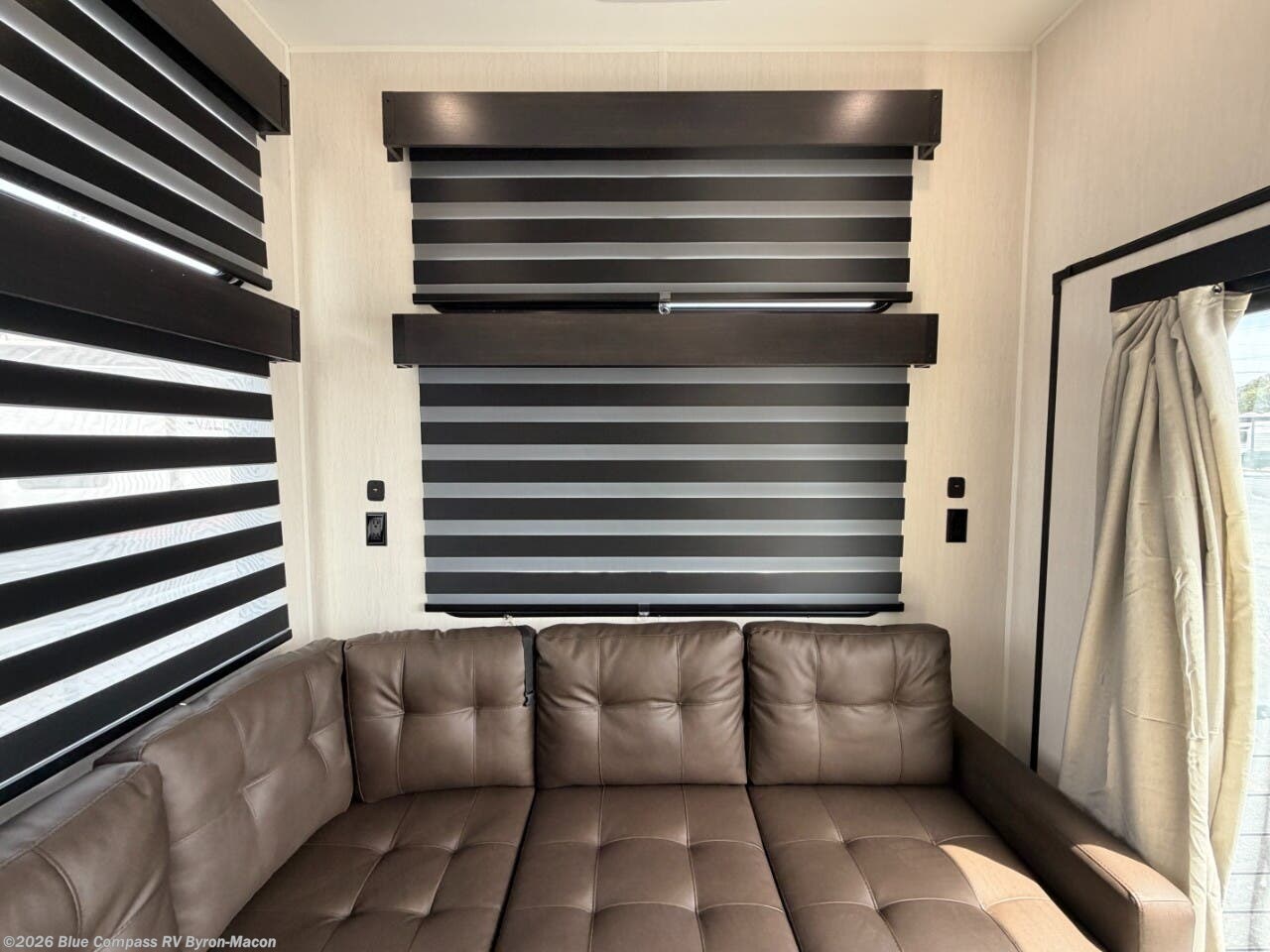 You'll feel right at home in this feature-packed destination trailer! The rear private bedroom features one of the dual entry doors, an RV king bed, and a side patio for great outdoor views! There is also a wardrobe with washer/dryer prep if you want the option to add these appliances. Above the bedroom, you'll find a loft with a queen bed, a fireplace and a storage cabinet to keep the space tidy. The chef of your group can whip up their best meals in the middle kitchen, and there is a spacious pantry to keep snacks stocked. Your crew can relax on the L-shaped sofa in the front living room, enjoy the fireplace and TV, or just take in the outdoor views provided by the huge side patio!
