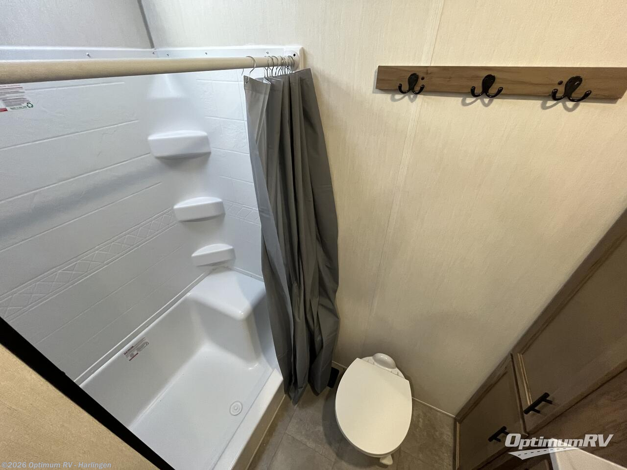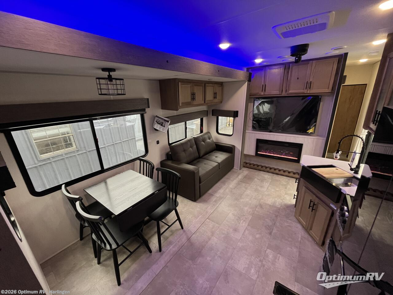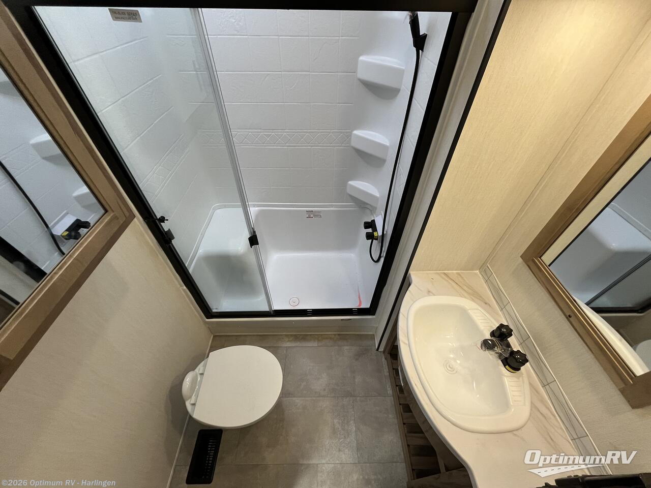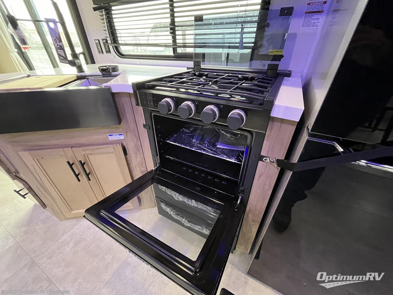 Spacious and comfortable is how you will describe this destination travel trailer featuring triple slides, two full baths, and a spacious combined kitchen and living area thanks to the large slide here featuring a free standing dinette and sofa. The kitchen includes everything you need to comfortably cook while you are away, and allows you to make meals for your family just like at home. There is a large pantry where you can keep plenty of snacks and dry goods for your trip. In the rear of the coach, there is a private bedroom featuring a queen bed slide for added space, comfortable sleeping, as well as ample storage between a dresser and wardrobe for your clothing. In the very back, a master suite bath featuring a vanity with sink, a shower with a seat, and linen storage for your towels and toiletries. This front bedroom also features a king bed slide!