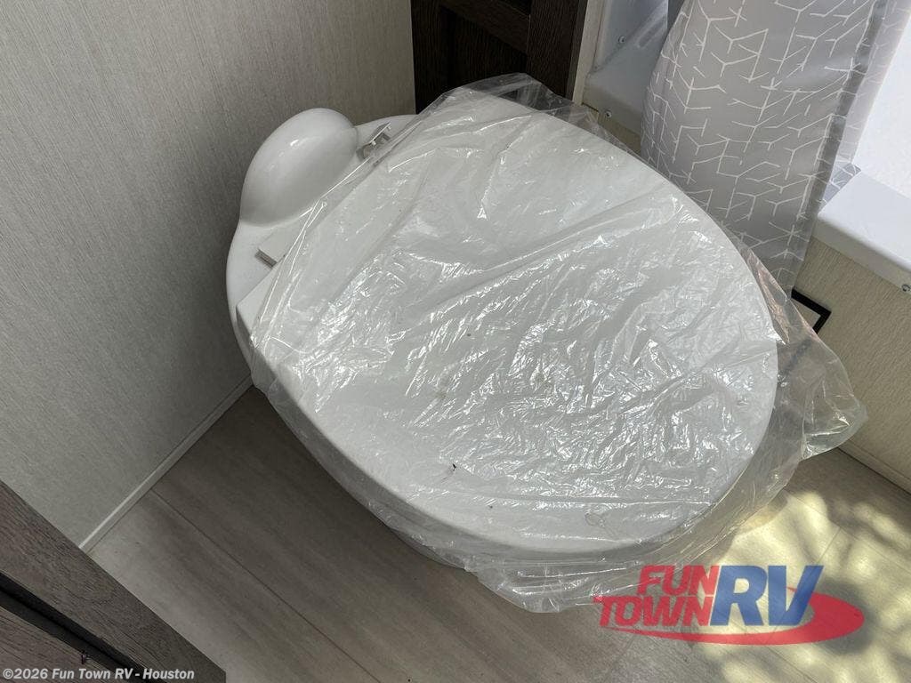 You'll love every minute spent in this spacious toy hauler! Since there is 14' of total garage space, you can plan to bring along kayaks, bikes, and hiking gear galore. This model includes a flip-up counter with stools, glass patio doors, and full kitchen amenities so you can whip up your best meals each day. The full bath will let you freshen up at night, and the king bed in the front bedroom is sure to bring comfort!